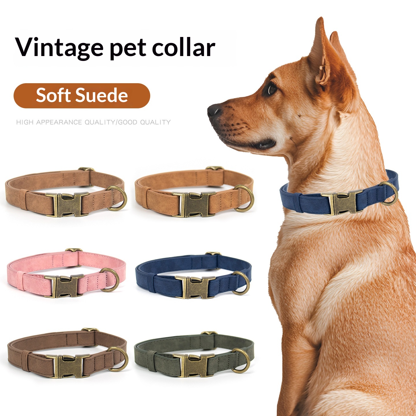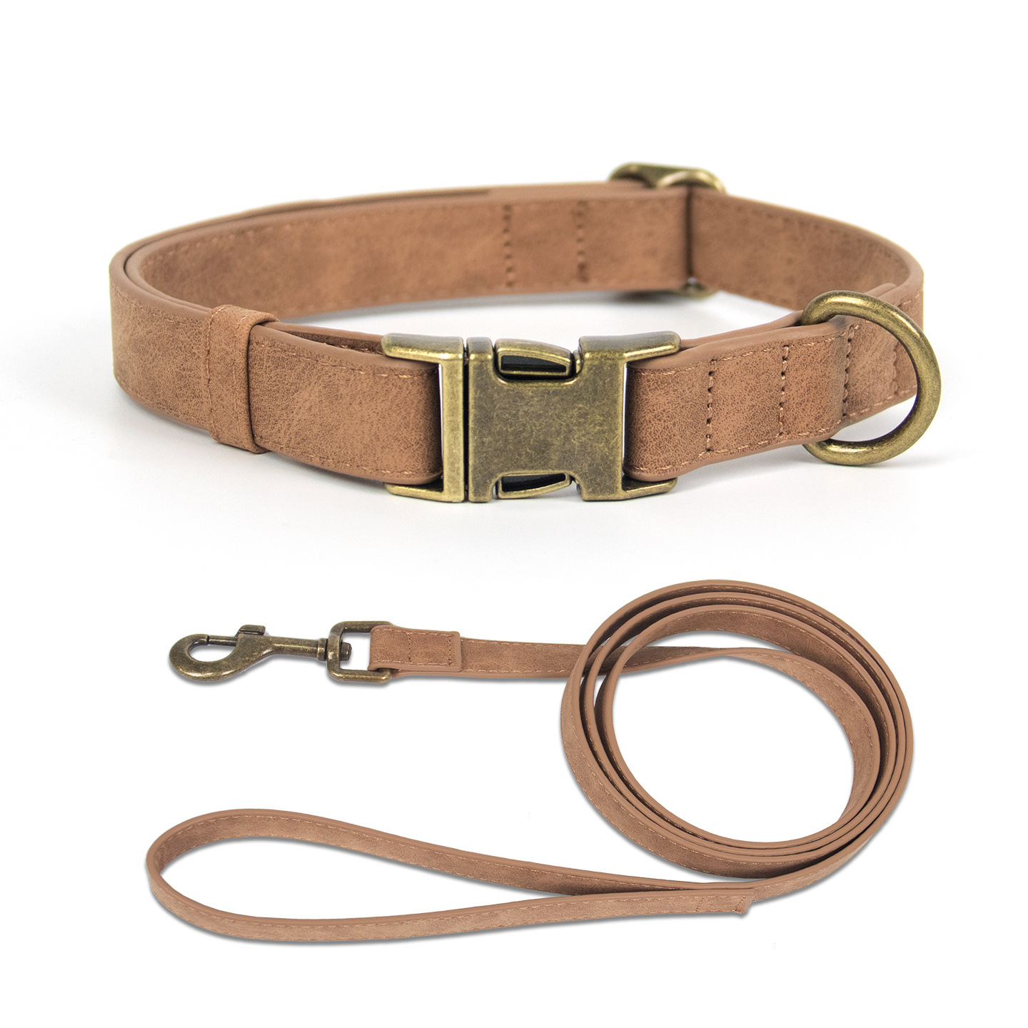 This pet collar and leash set is crafted from high-quality leather, available in multiple color options, suitable for large, medium, and small dogs. Featuring a vintage design, it offers reliable control to help prevent pulling.