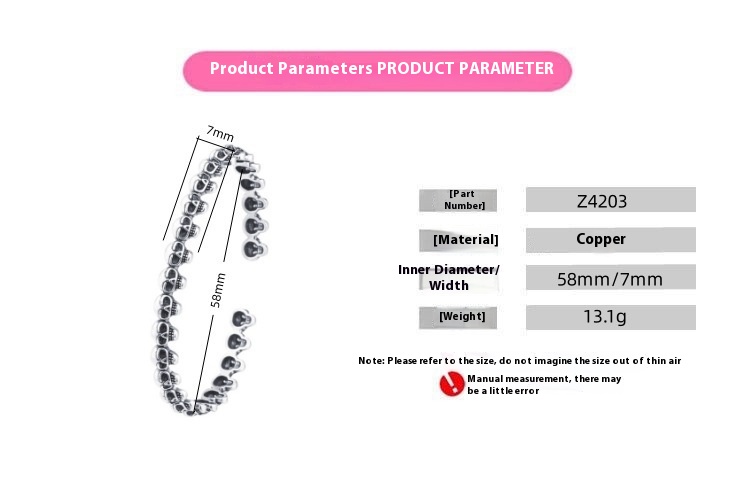 Product information:Treatment Process: Electroplating Material: Copper Popular elements: skull Style: European and American