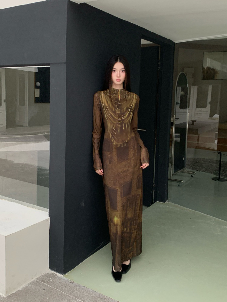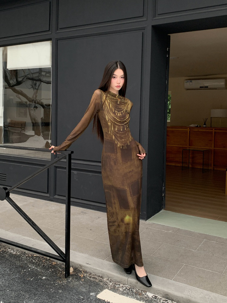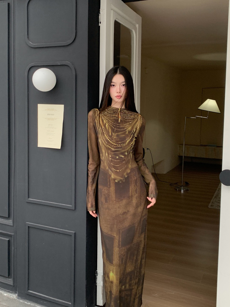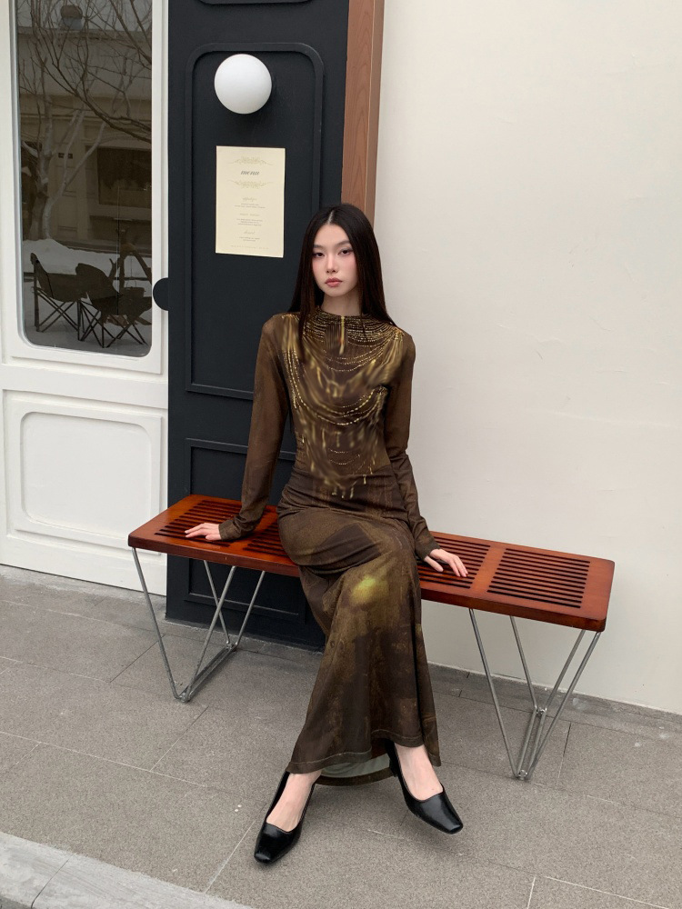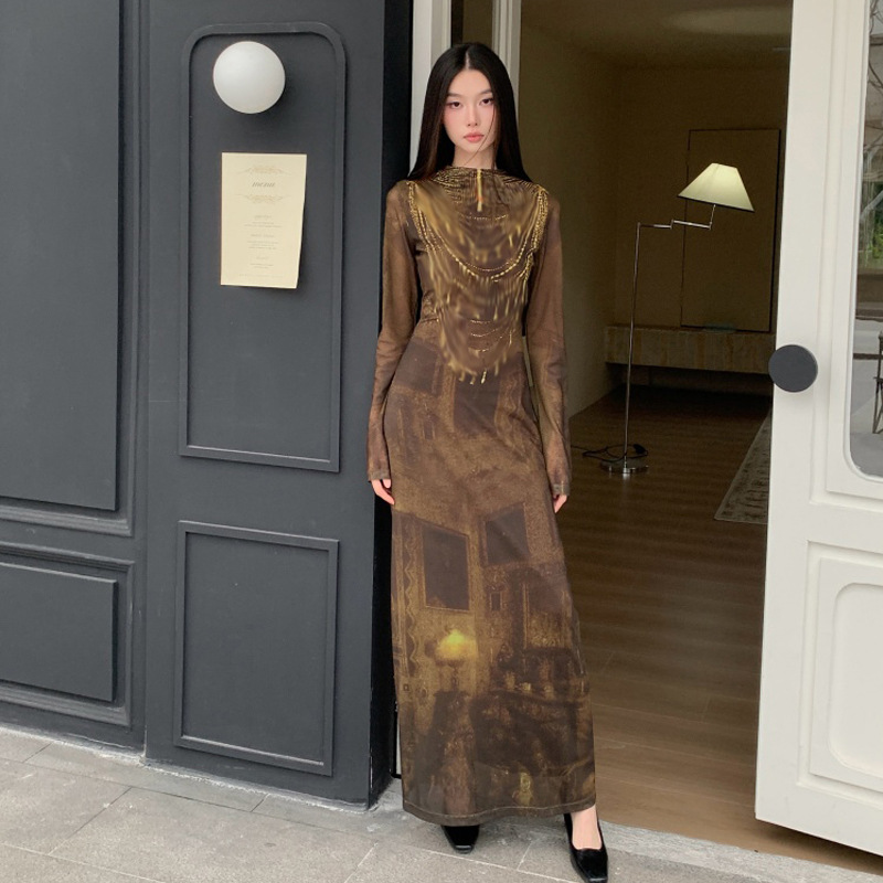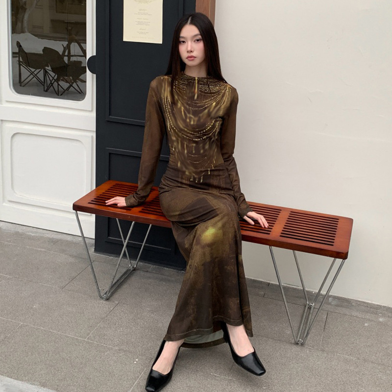Retro Fitted Waist Slimming Long-Sleeve Dress For Women