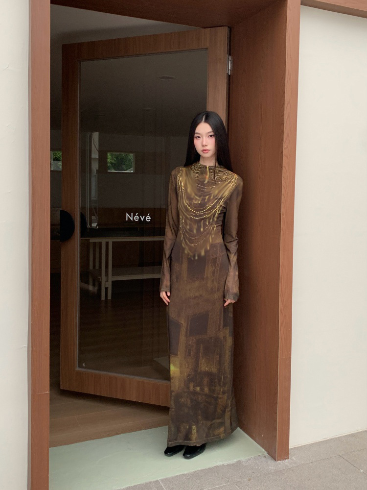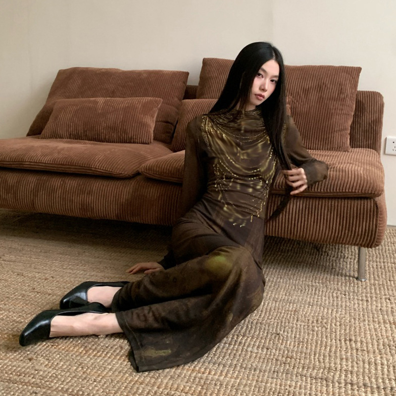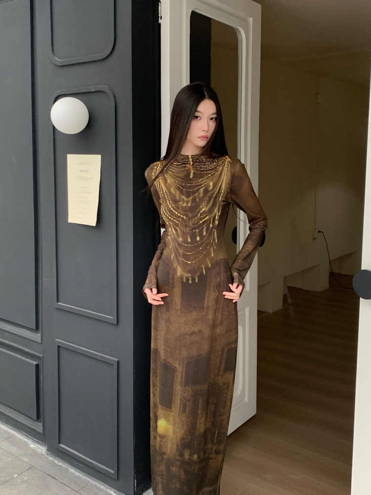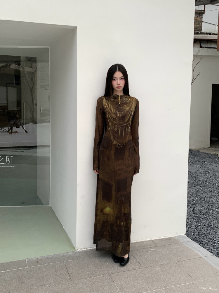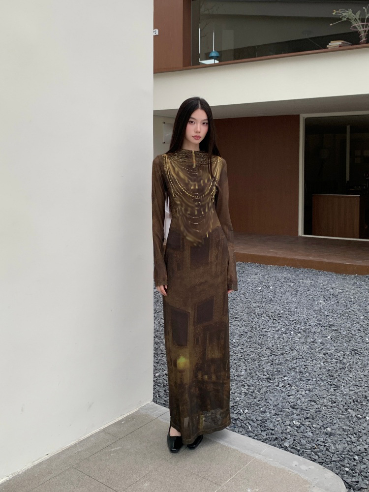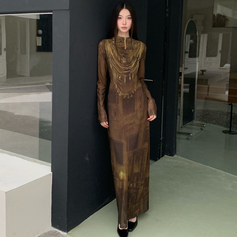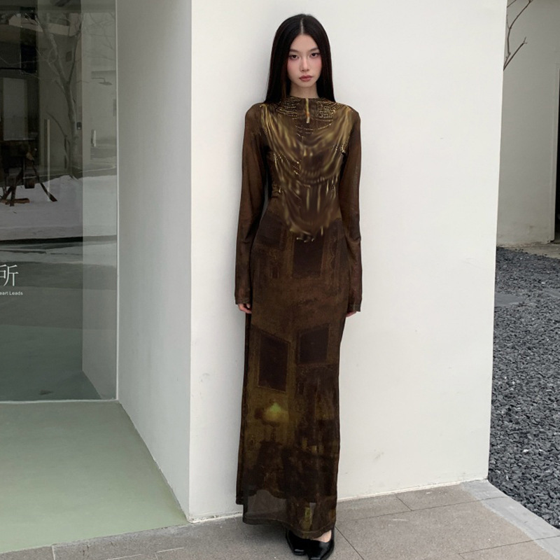 Retro Fitted Waist Slimming Long-Sleeve Dress For Women