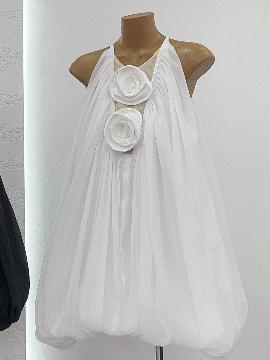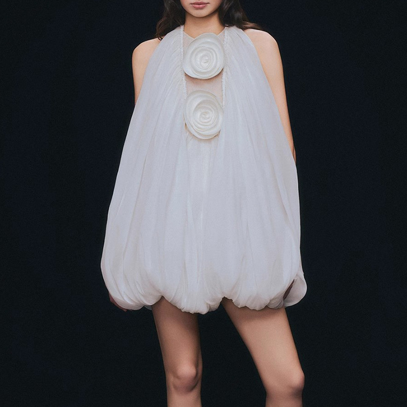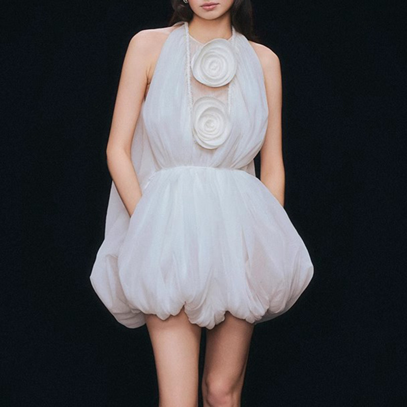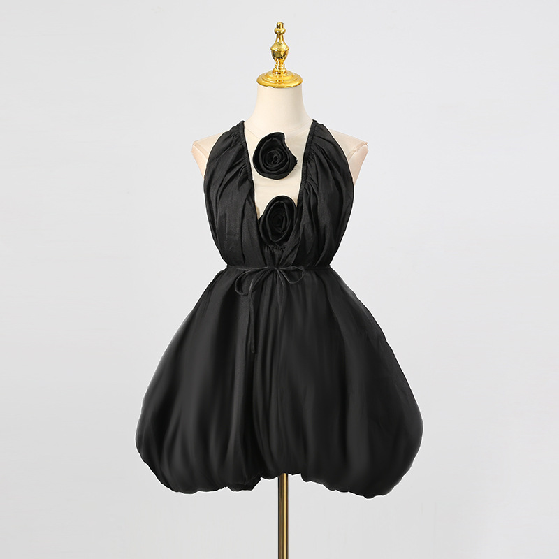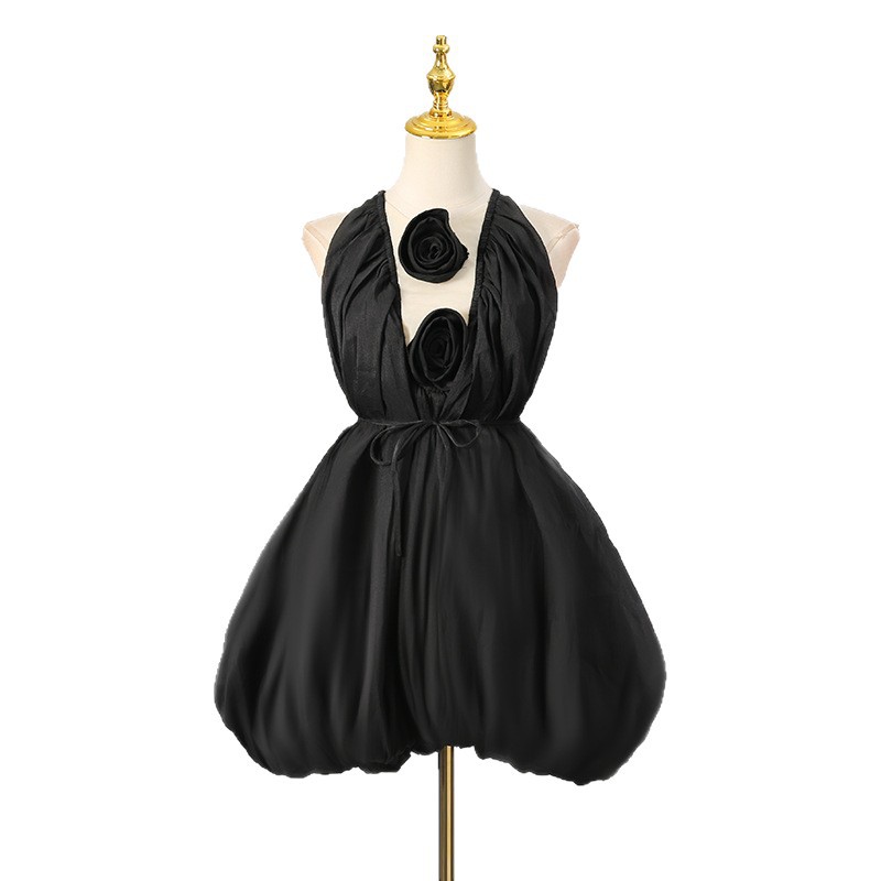 Retro French Boudoir Style Light Luxury Sleeveless Puffy Mini Skirt