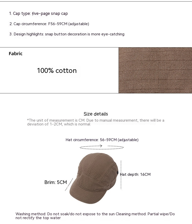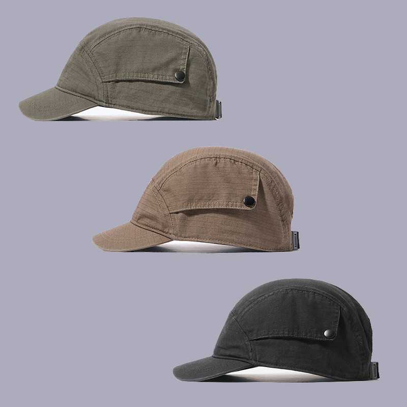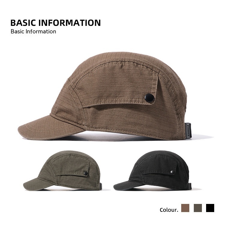 Color: Black short brim five leaf snap cap, brown short brim five leaf snap cap, army green short brim five leaf snap cap