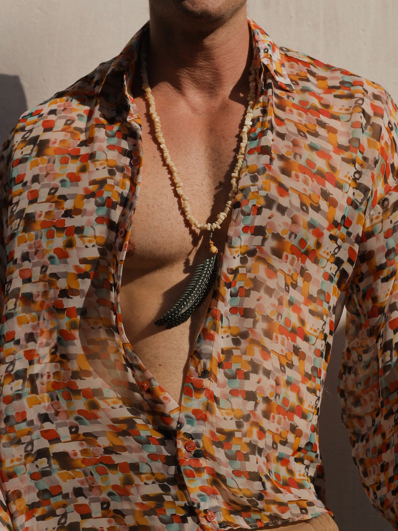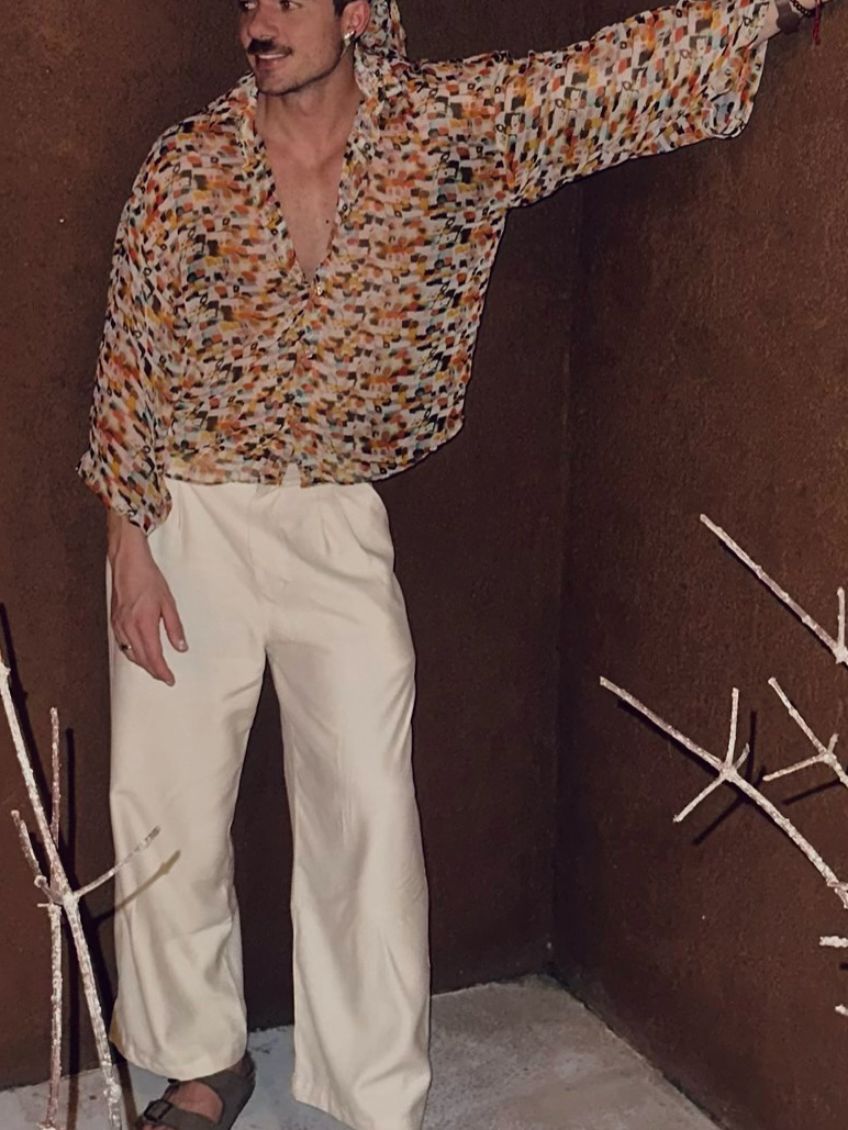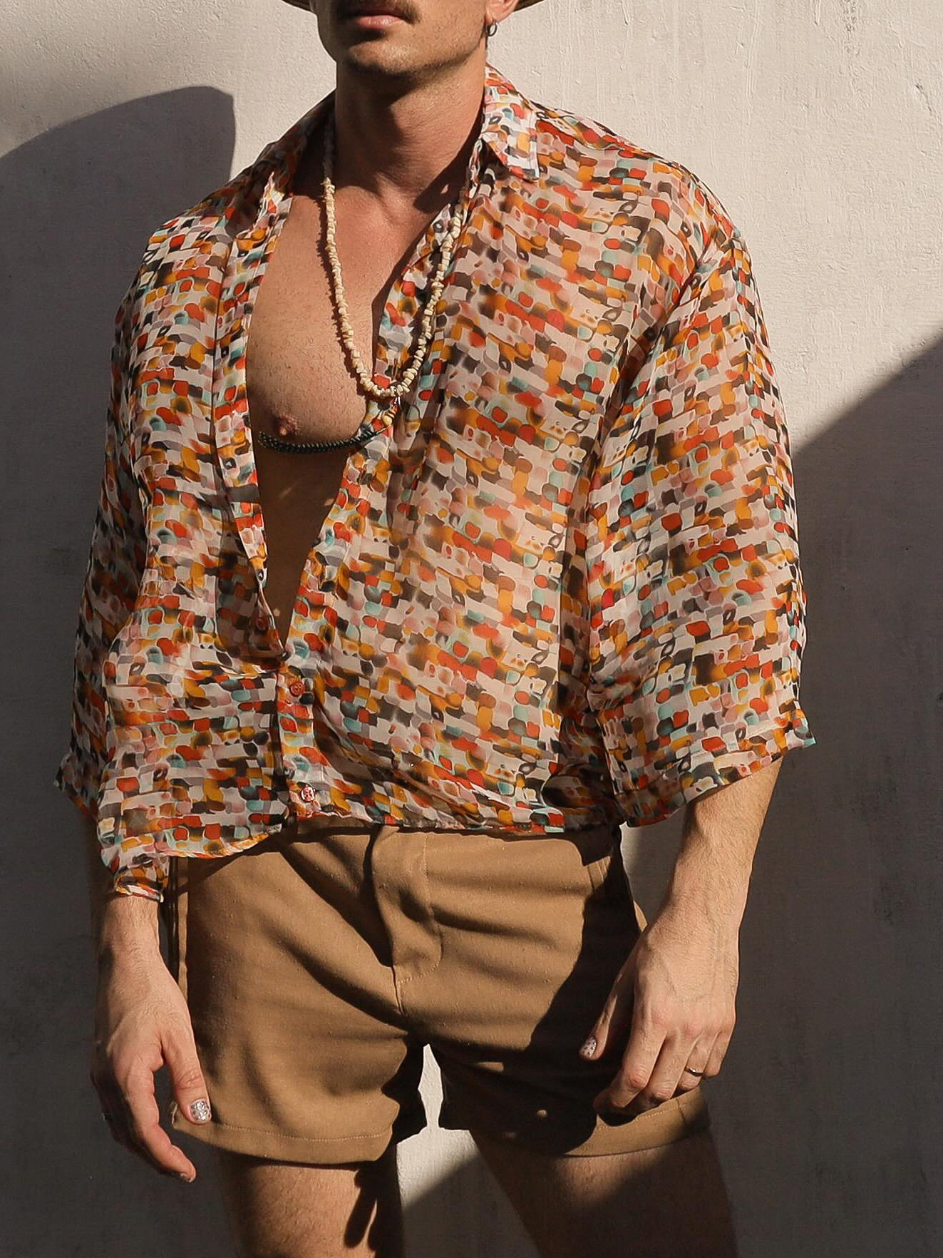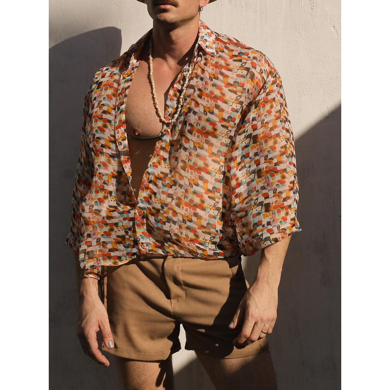 Retro Geometric Print Sheer Oversized Shirt