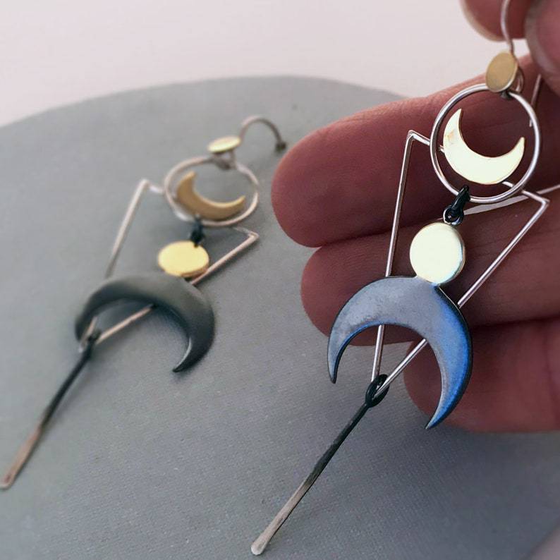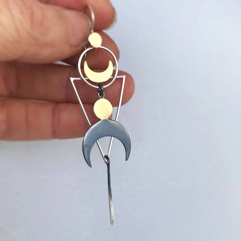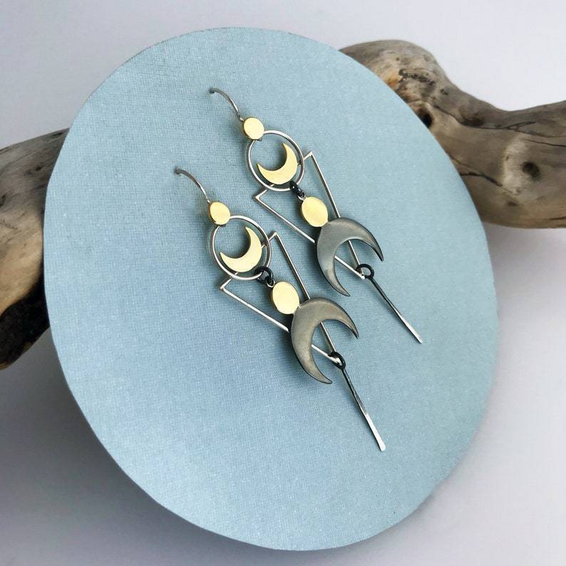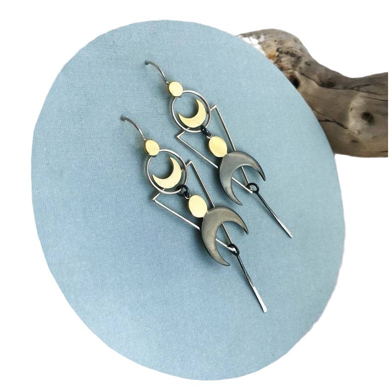 Retro Geometric Sun Moon Long Pendant Earrings