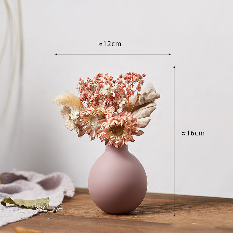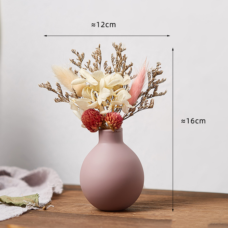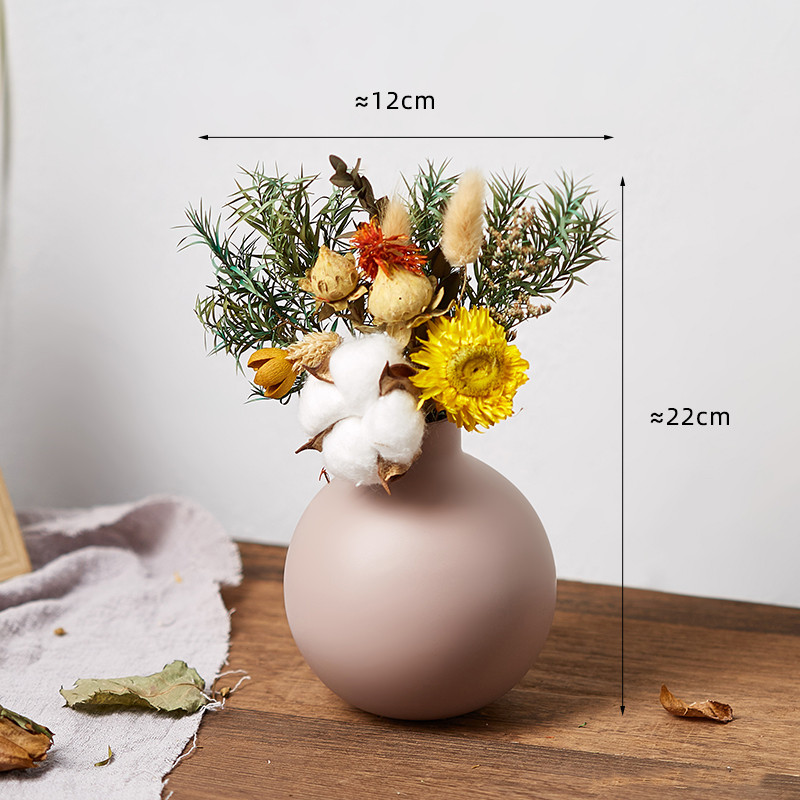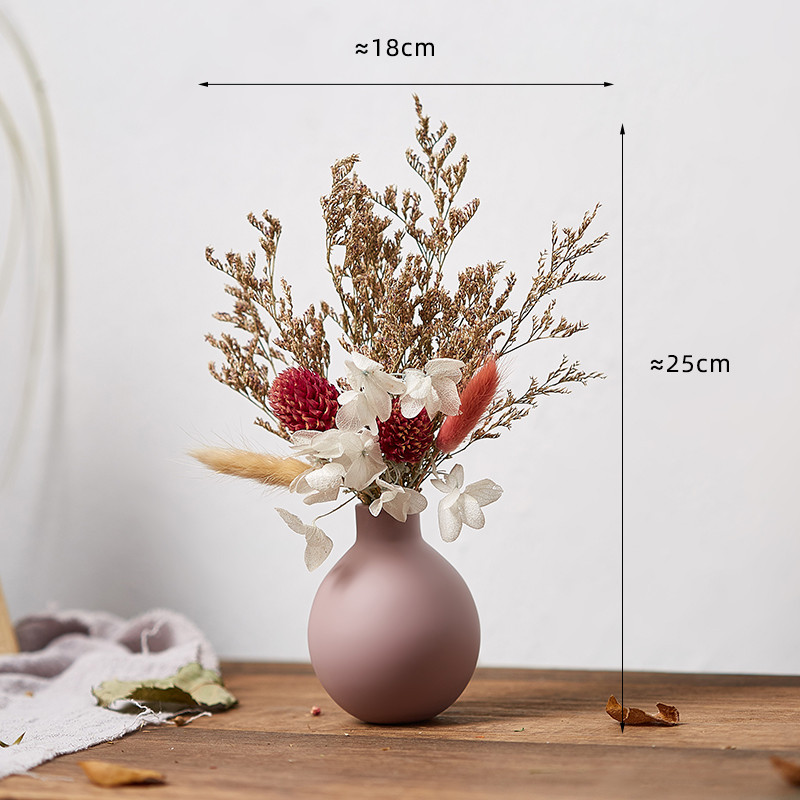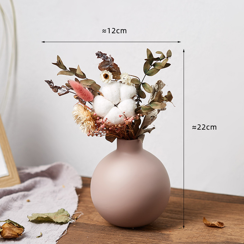 Round bottle body, glass material, frosted texture, with dry flower bouquet, each one is carefully selected by florists, just to retain the beauty of blooming. Suitable for the living room, bedroom, studio and other scenes, with flowers and plants to embellish, pleasing to the eye, enhance the home style and artistic sense.