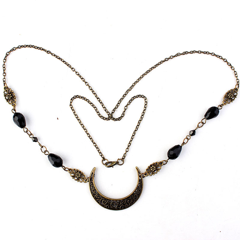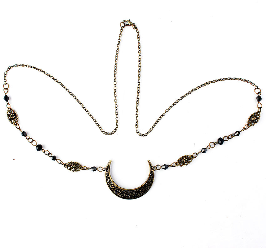 Amazon Hot Style Hollow Moon Pattern Accessories Head Chain Retro Natural Stone Crystal Bead Hair Accessories