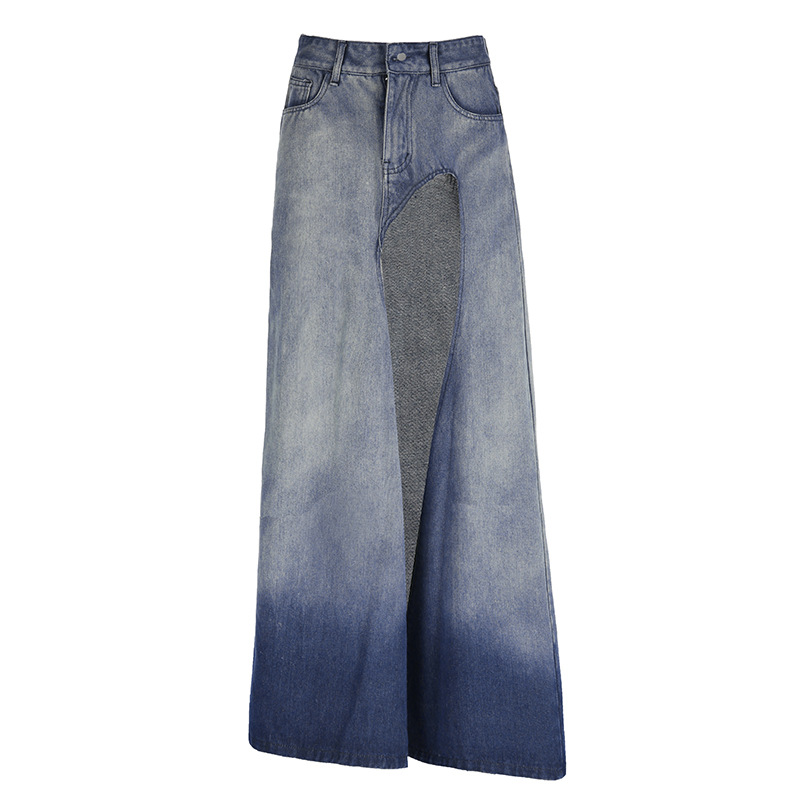 Retro Gradient Irregular Women's Denim Skirt