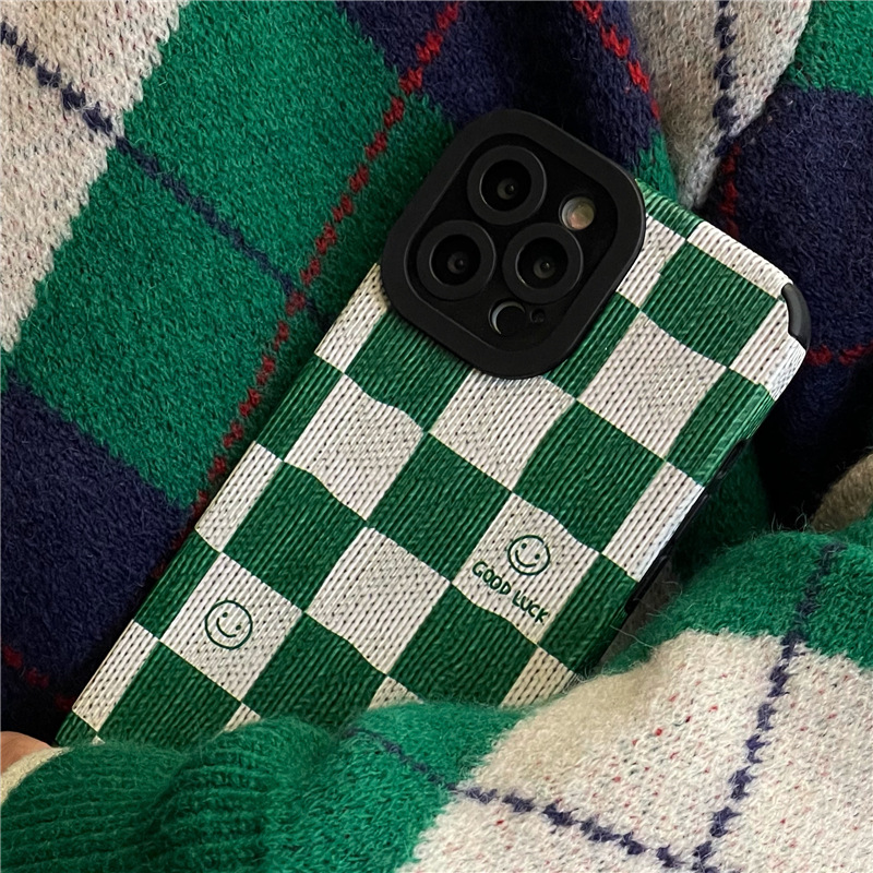 Color: Leather Green and White Sweater Grid XF Child Smiley CWK