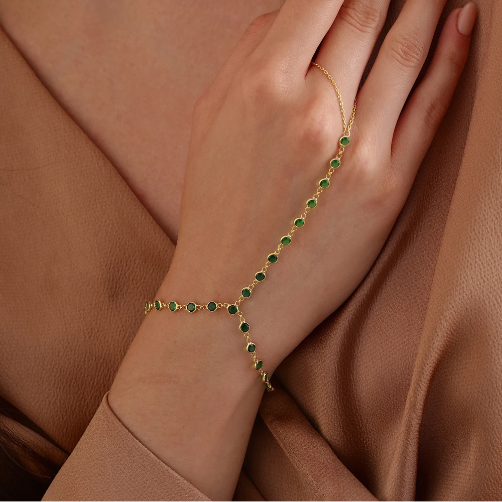 Retro Green Rhinestone Mitten-type Bracelet Niche