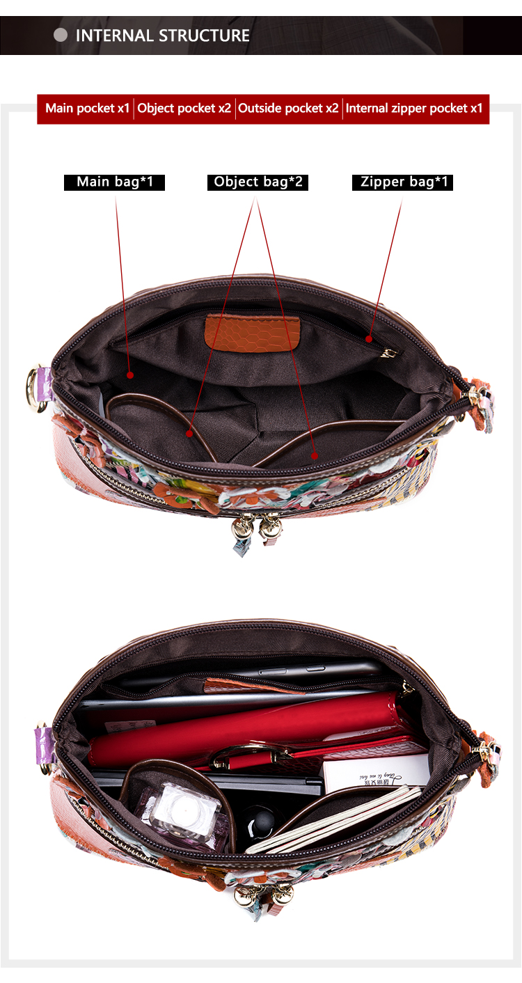 Bag internal structure: zipper pocket, mobile phone bag, sandwich zipper bag