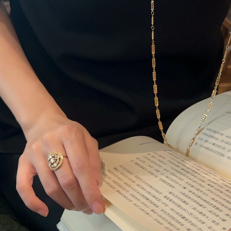 Retro Handmade Light Luxury High-grade Shining Adjustable Ring