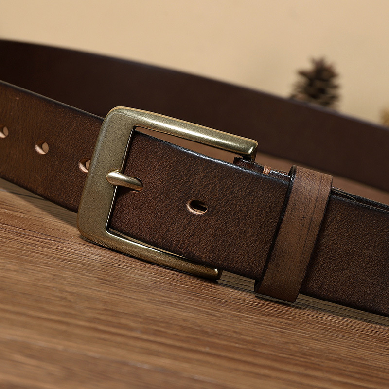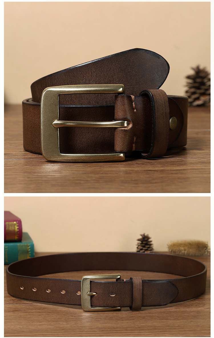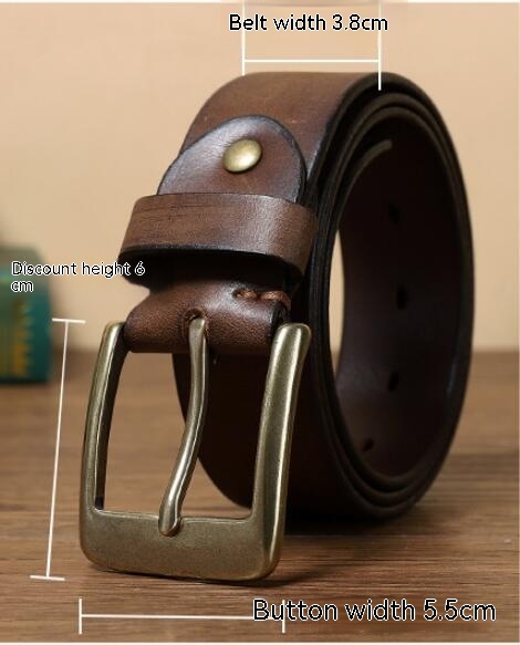 Retro Handmade Pure Copper Pin Buckle Cowhide Men's Belt