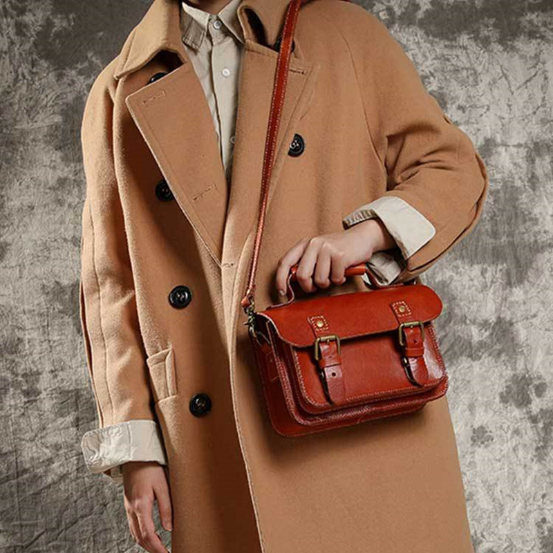 Retro Handmade Tree Cream Leather Women's Bag Vegetable Tanned Leather