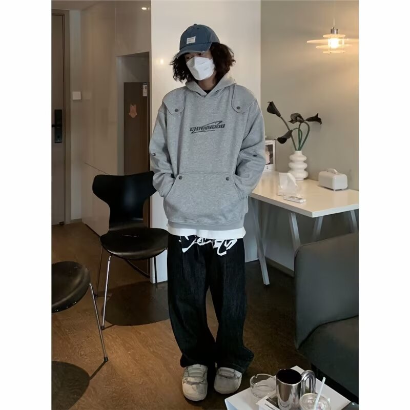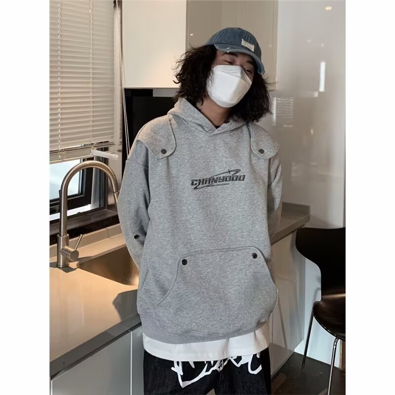 Retro Heavy Gray Padded Shoulder Long-sleeved Sweater