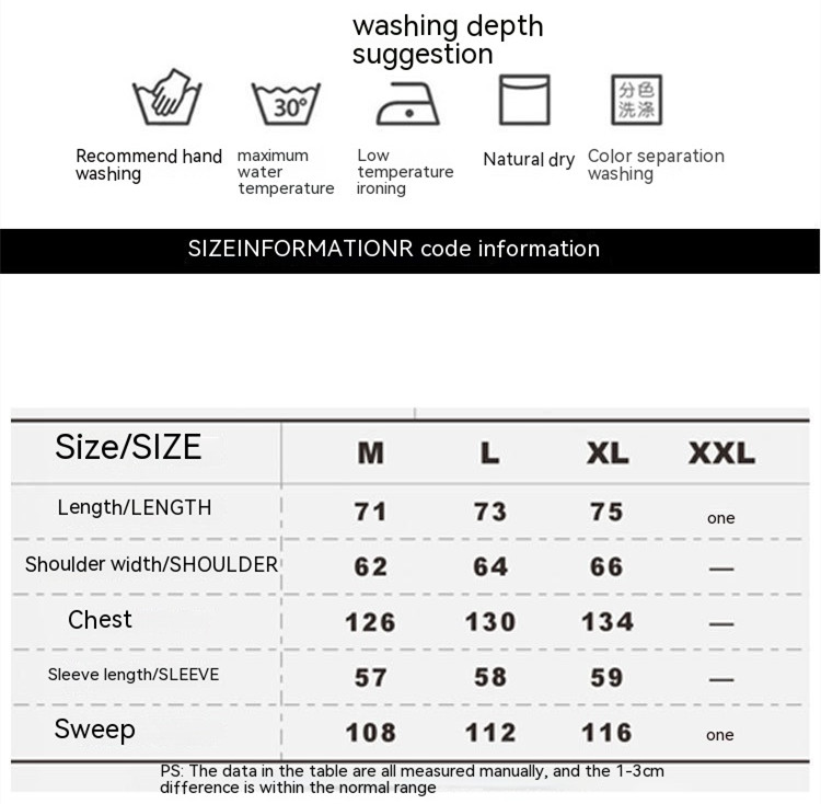1. Asian sizes are 1 to 2 sizes smaller than European and American people. Choose the larger size if your size between two sizes. Please allow 2-3cm differences due to manual measurement. 2. Please check the size chart carefully before you buy the item, if you don't know how to choose size, please contact our customer service. 3.As you know, the different computers display colors differently, the color of the actual item may vary slightly from the following images.