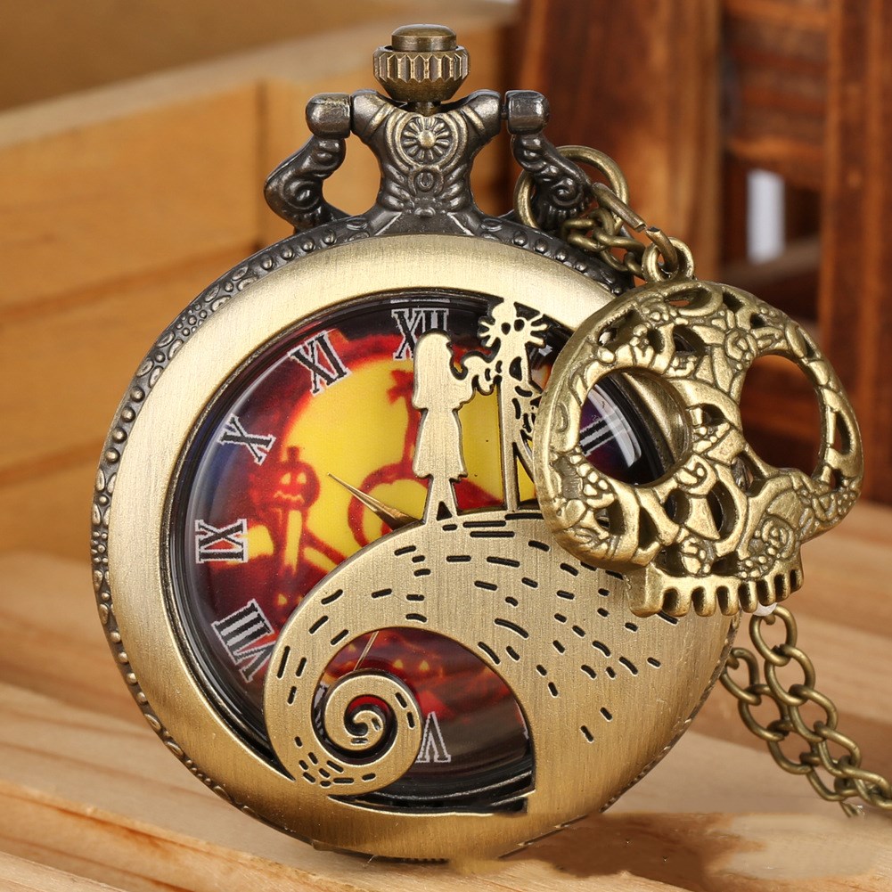 Retro Hollow Christmas Fright Night Theme Pocket Watch