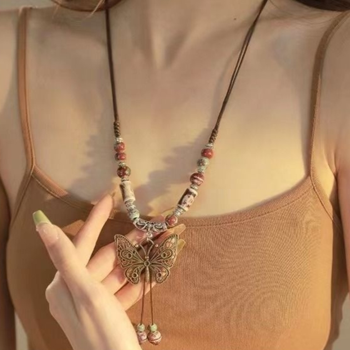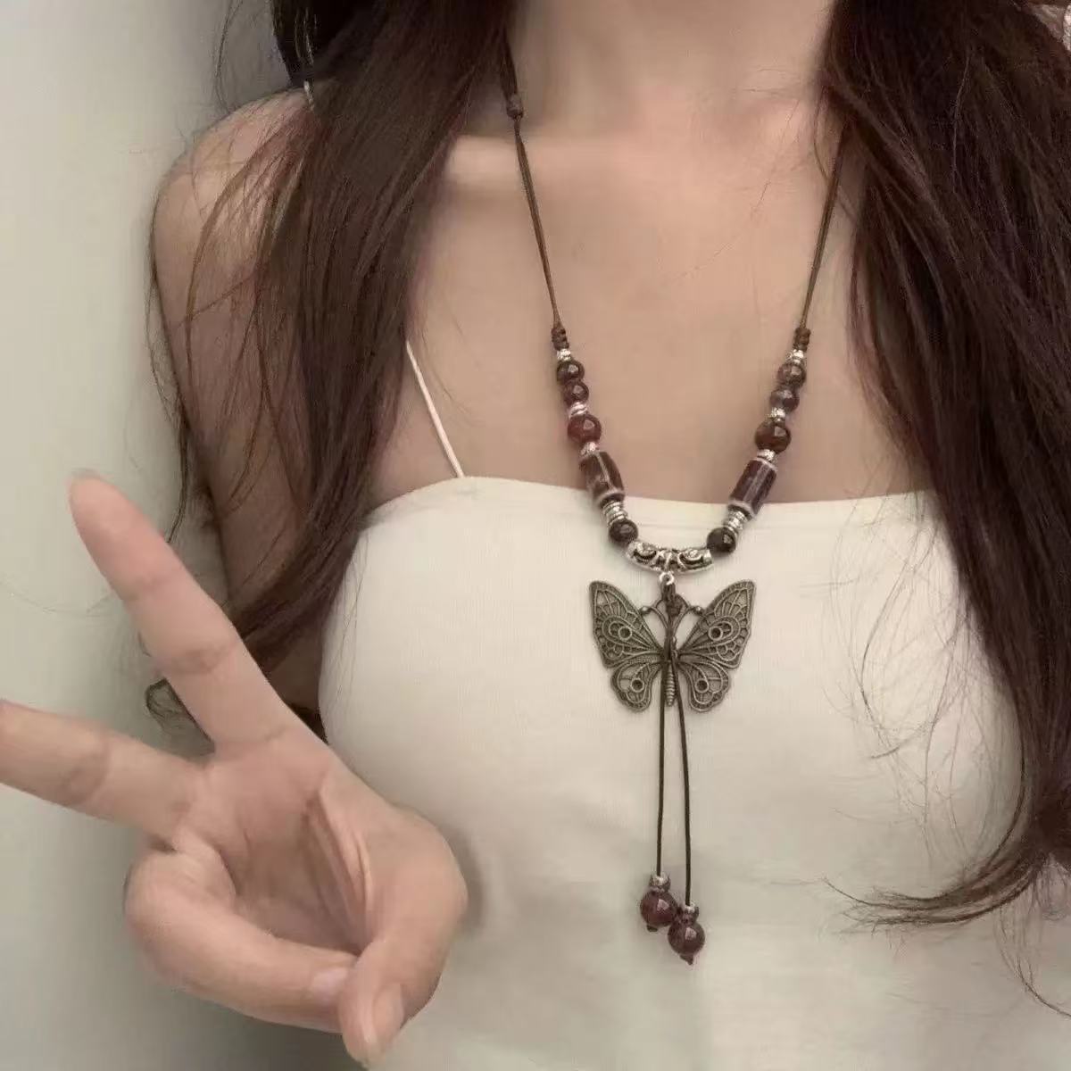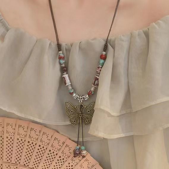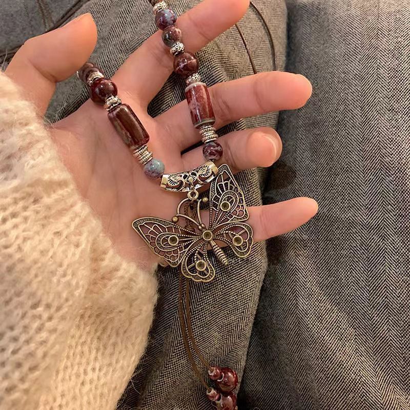 Color: butterfly butterfly ceramic necklace, gorgeous empty butterfly pendant, ancient butterfly long necklace, blue butterfly long necklace, White Butterfly long necklace, ceramic ring long necklace, Meiling ceramic necklace, national style ceramic necklace, yandai butterfly ceramic necklace, love heart ceramic necklace, tassel necklace, light color XINGX necklace, dark color XINGX necklace, Camellia necklace, five-pointed star ceramic necklace