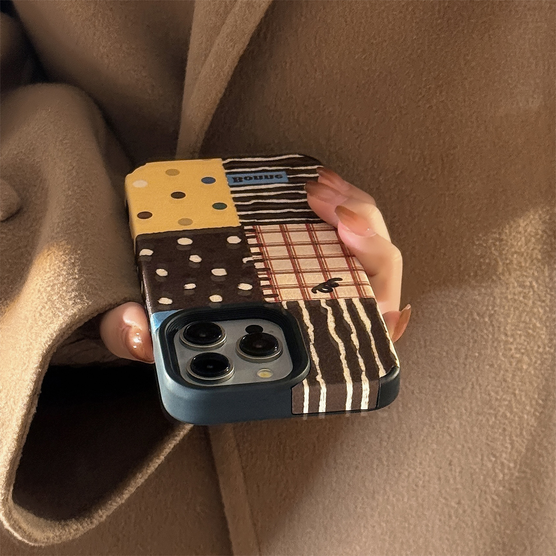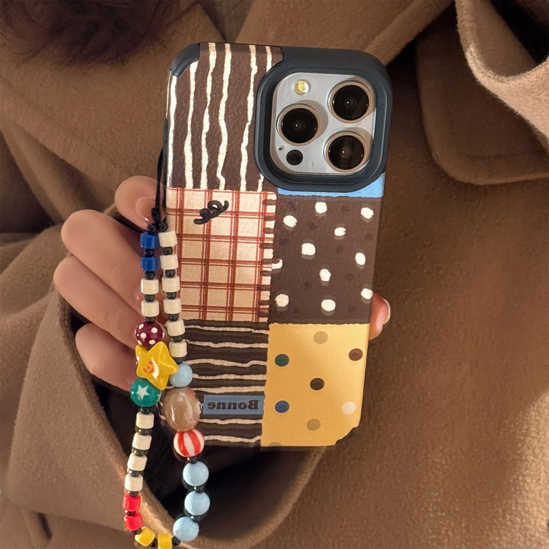 Trendy elements: Plaid, hanging chain, chain shoulder strap