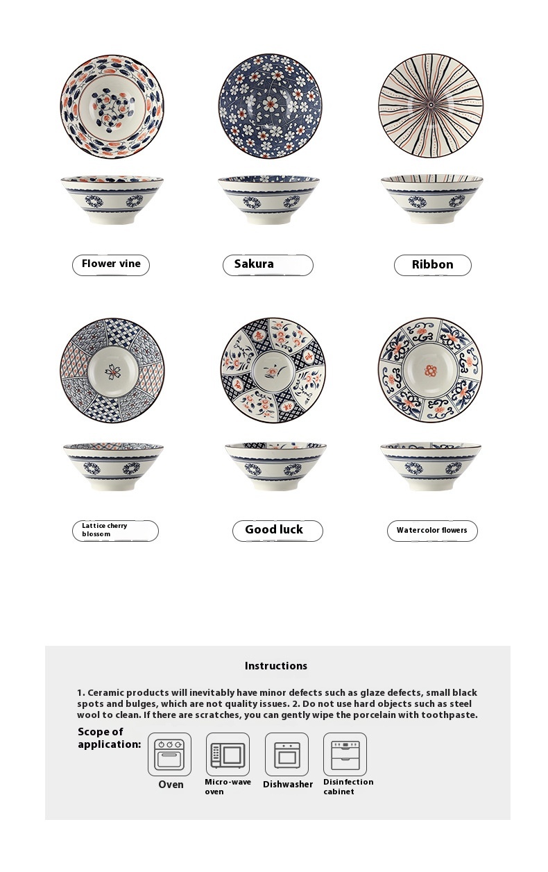 Color: 7-inch large bowl-HANAFUJI,7-inch large bowl-cloth pattern cherry blossom, 7-inch large bowl-ribbon, 7-inch large bowl-plaid cherry blossom, 7-inch large bowl-good luck, 7-inch large bowl-watercolor flower