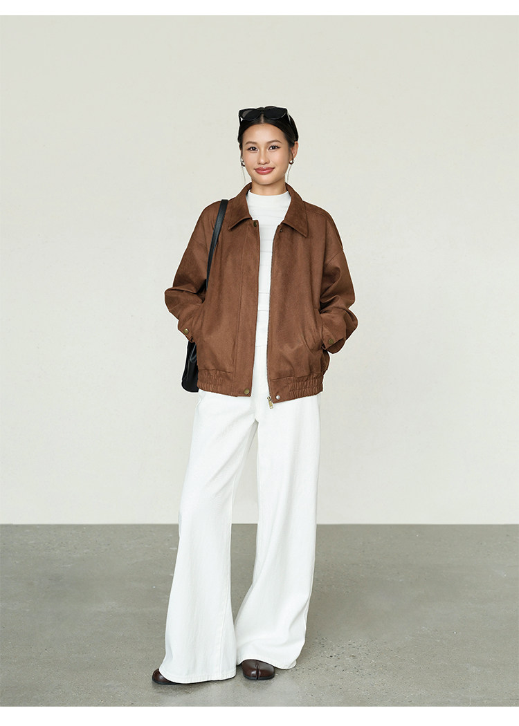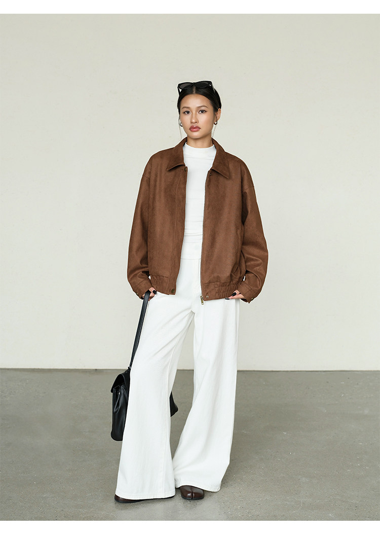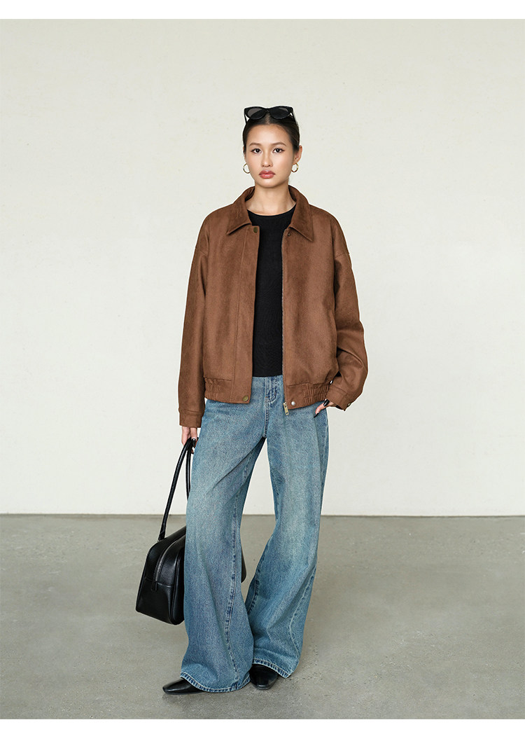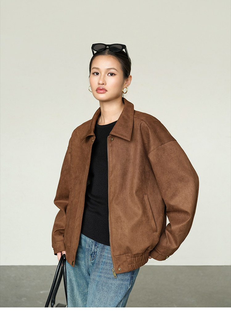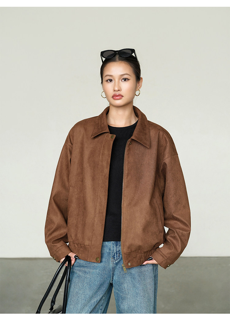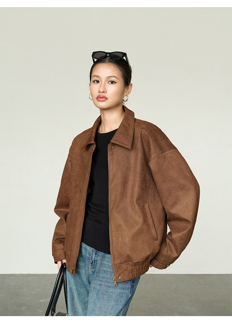 Retro Lapel Feminine Loose-fitting Casual Jacket Top For Women