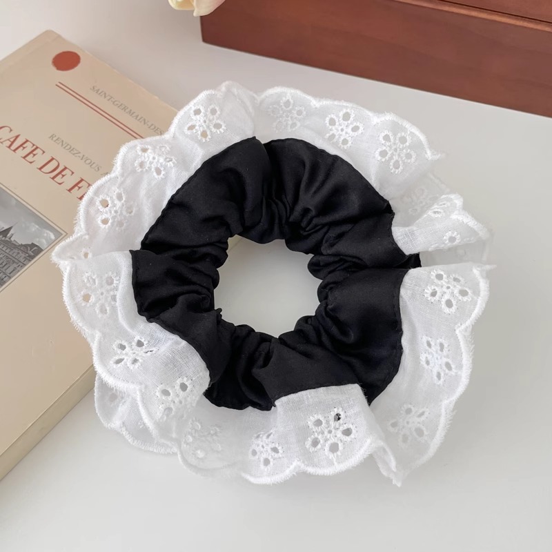 Color: 4# beige lace hair band 1, 7# black embroidered lace hair band 1, 2# white embroidered lace hair band 1, 6# Black white lace cut-out ruffled double layer 1 piece,