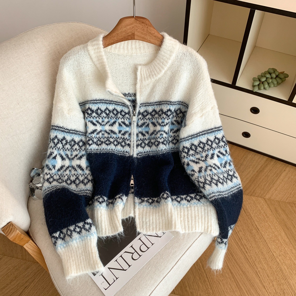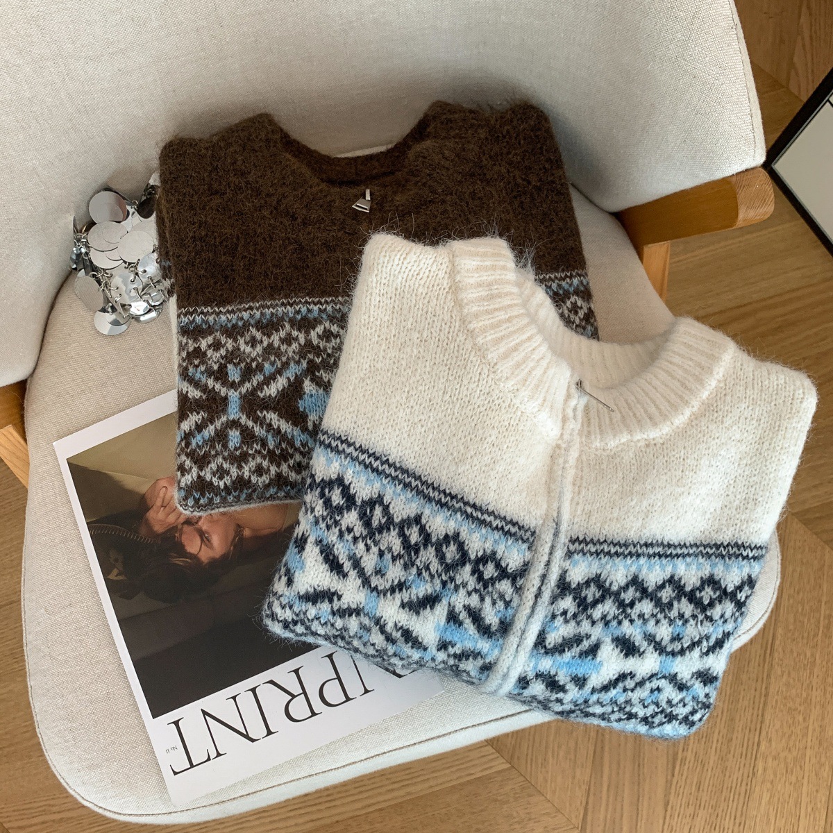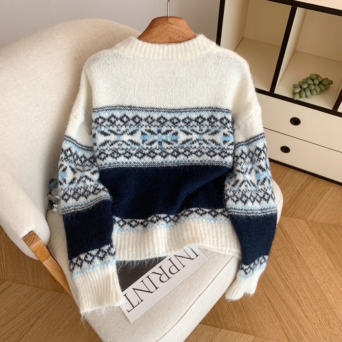 Retro Lazy Style Jacquard Long Sleeve Sweater Women