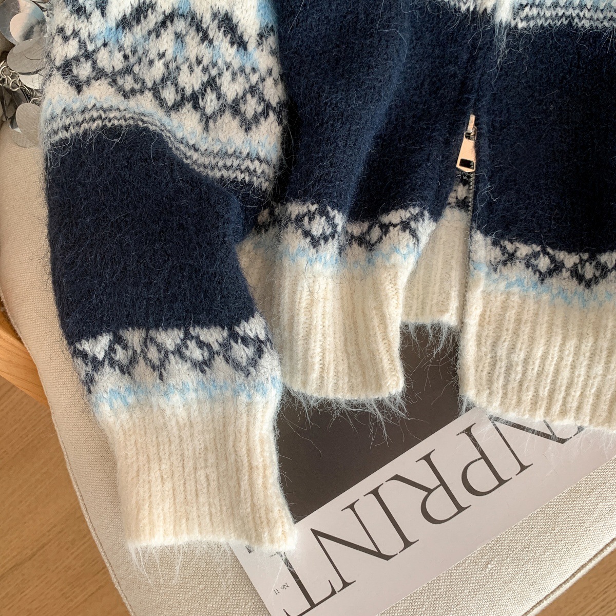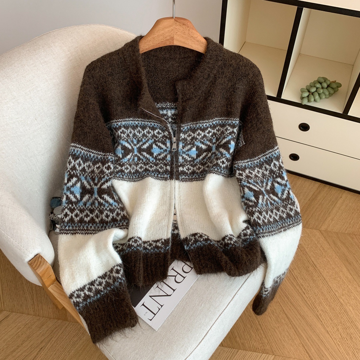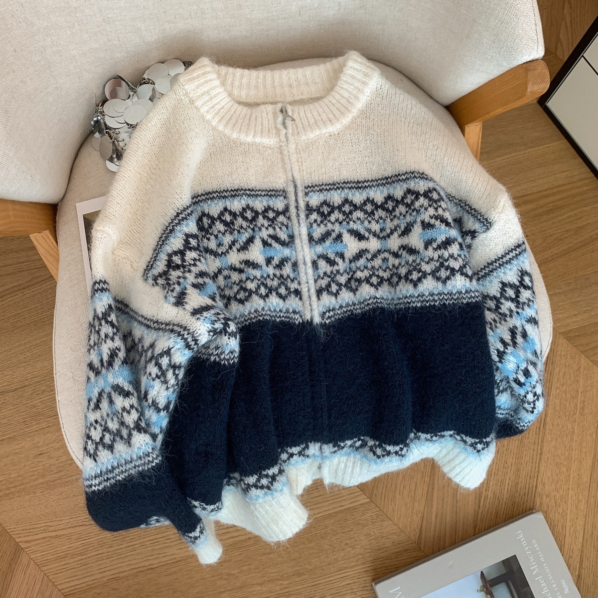 Retro Lazy Style Jacquard Long Sleeve Sweater Women