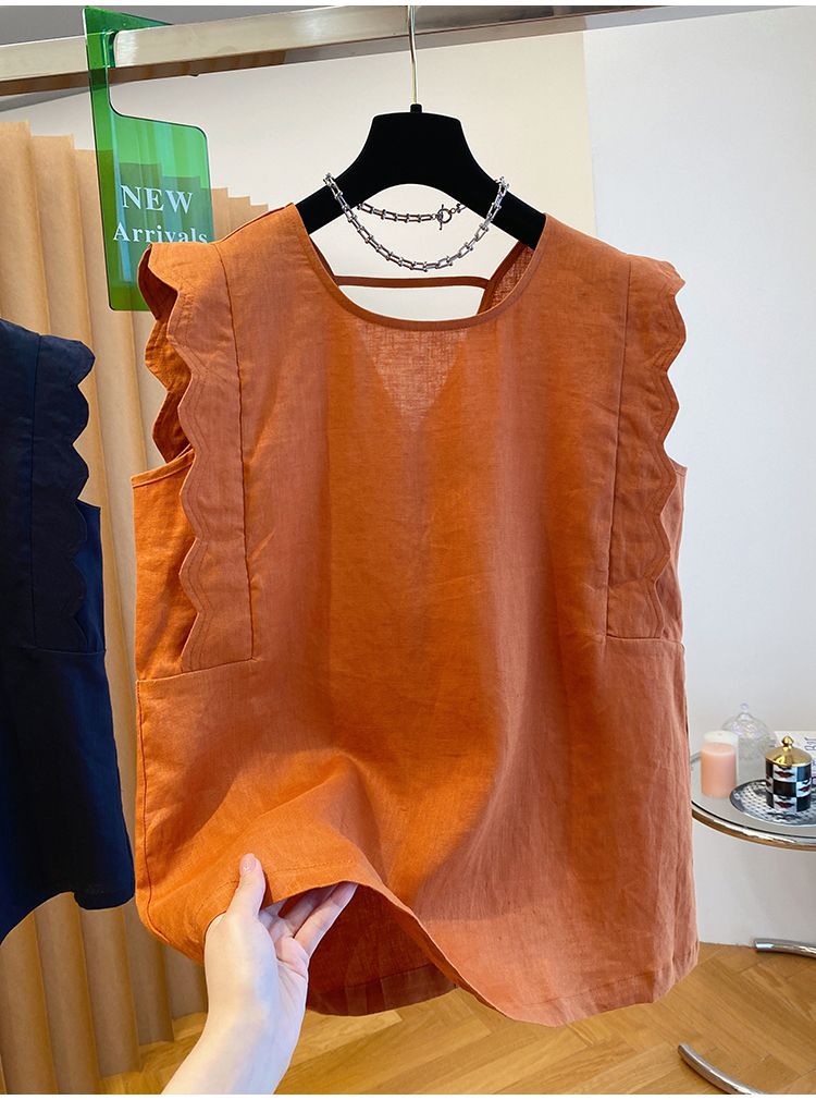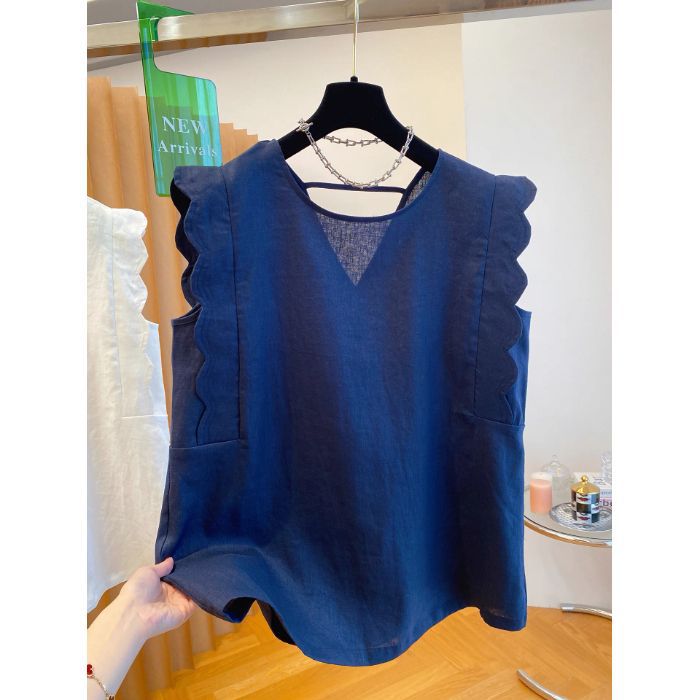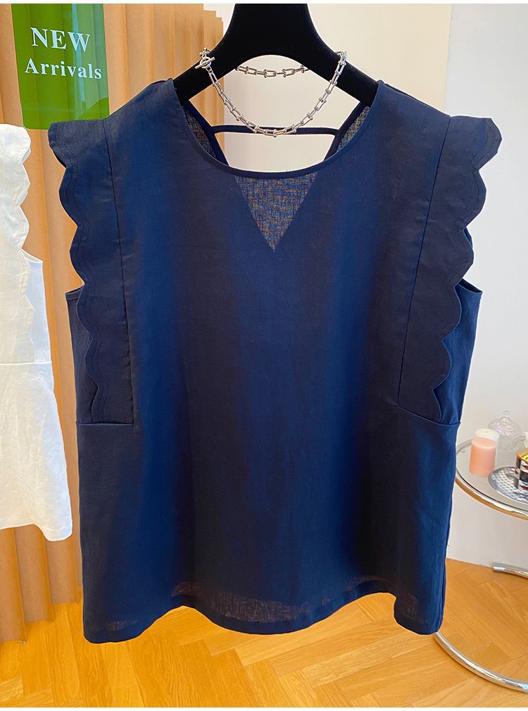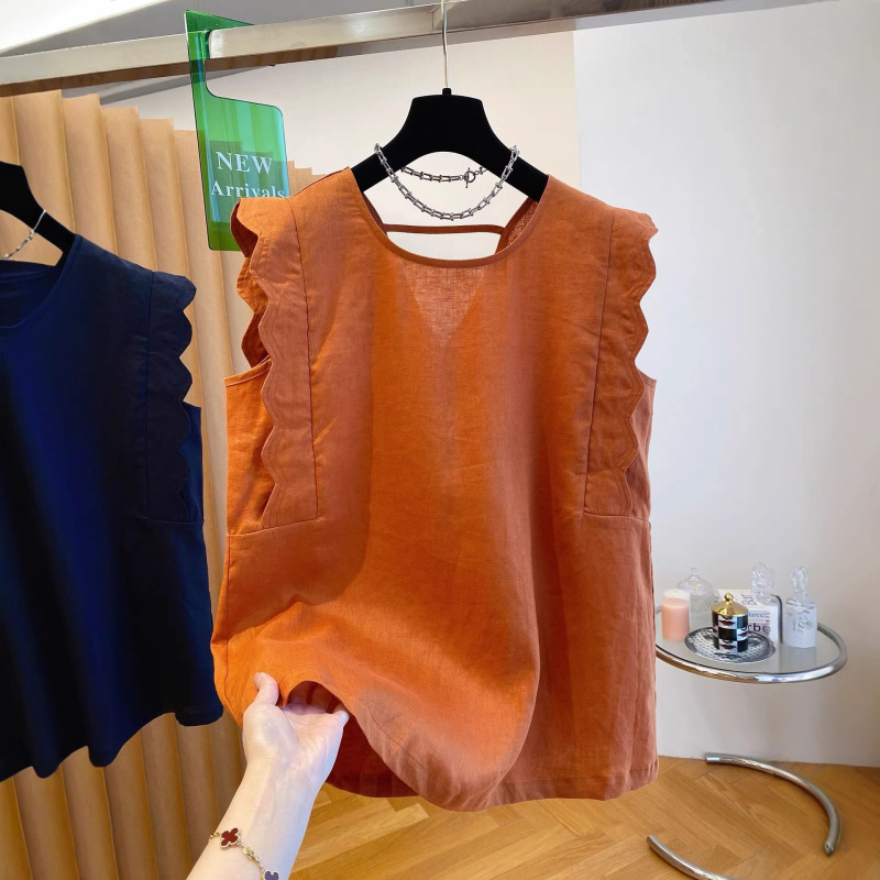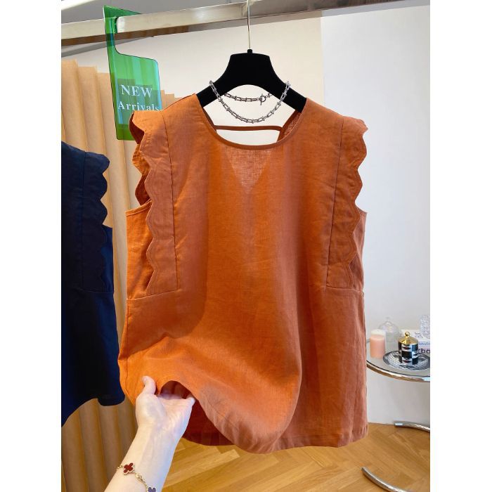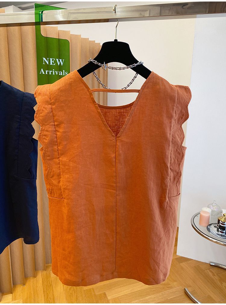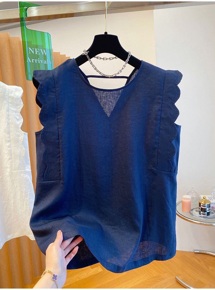 Retro Linen Vest Shirt Women's Top