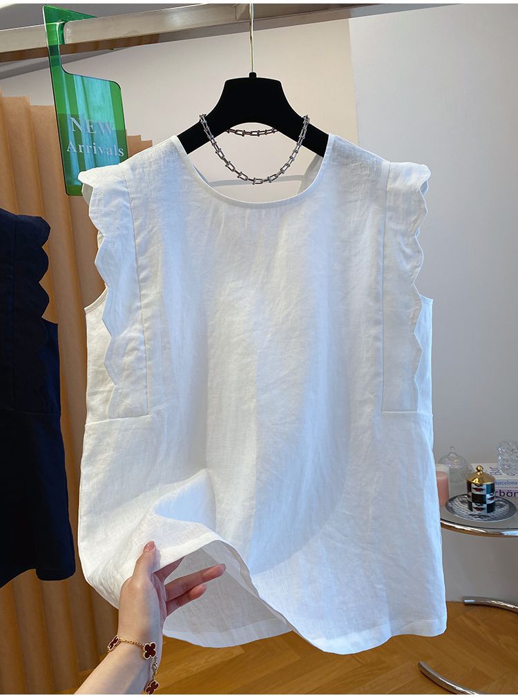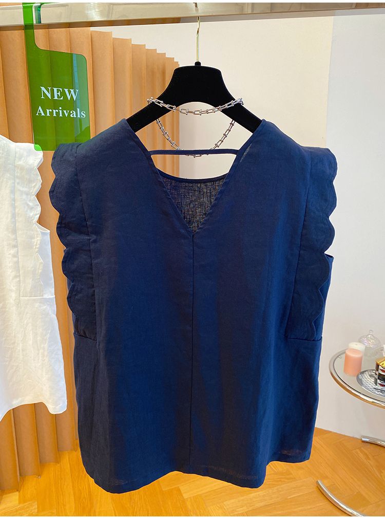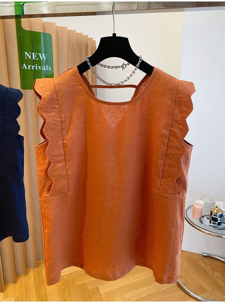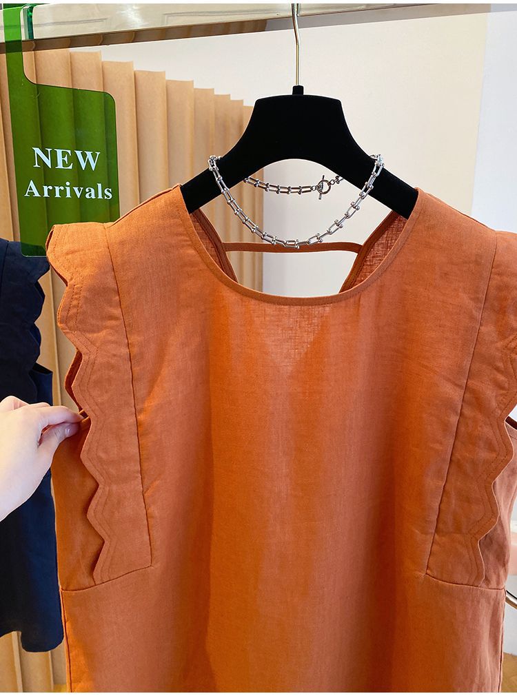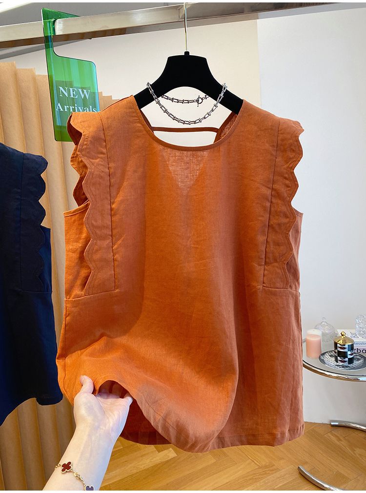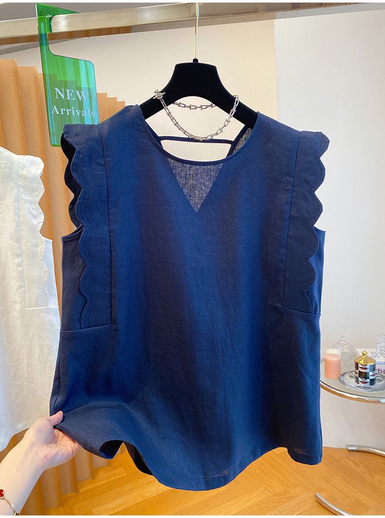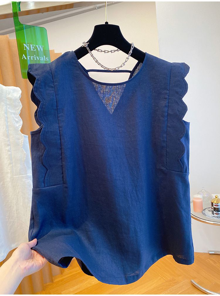 Retro Linen Vest Shirt Women's Top