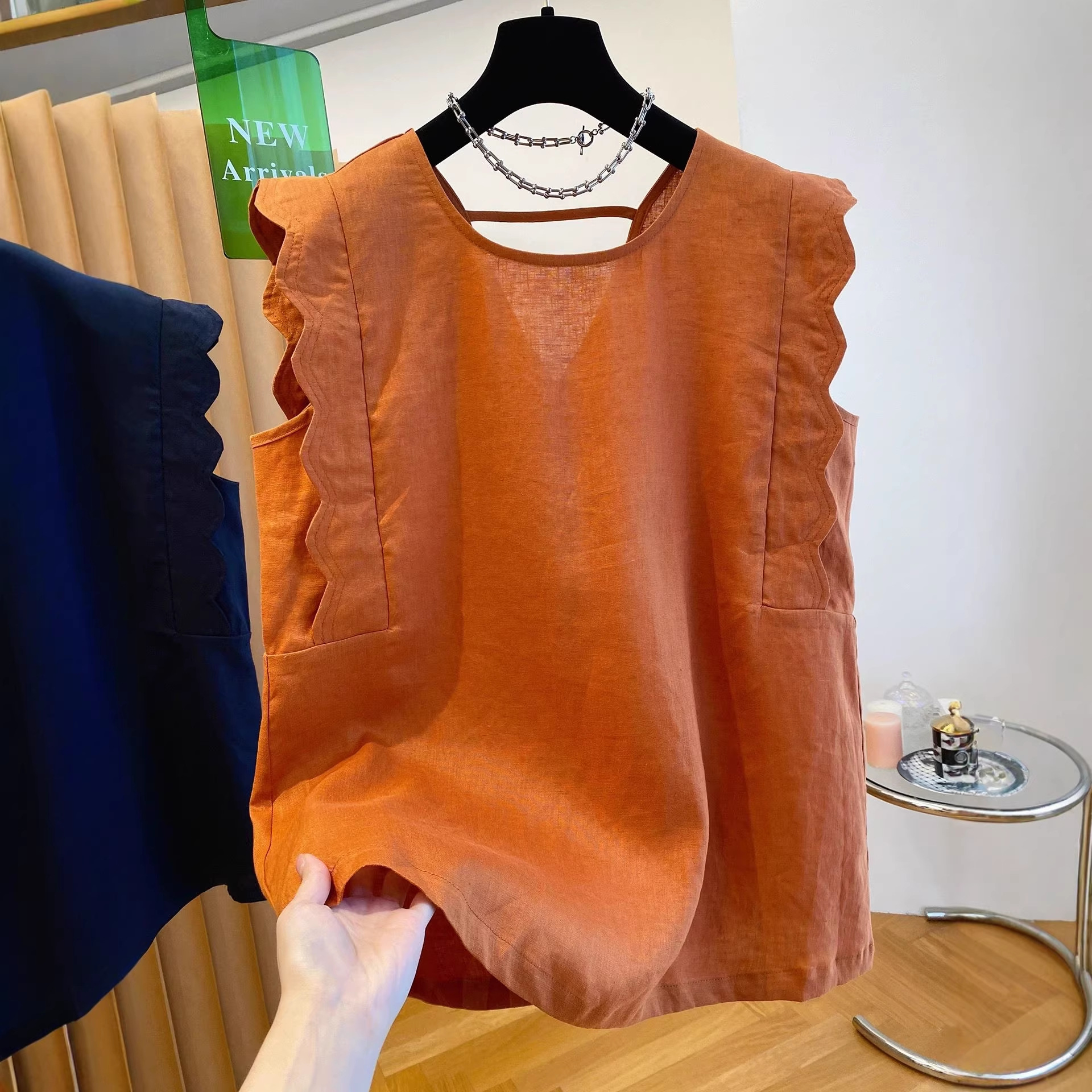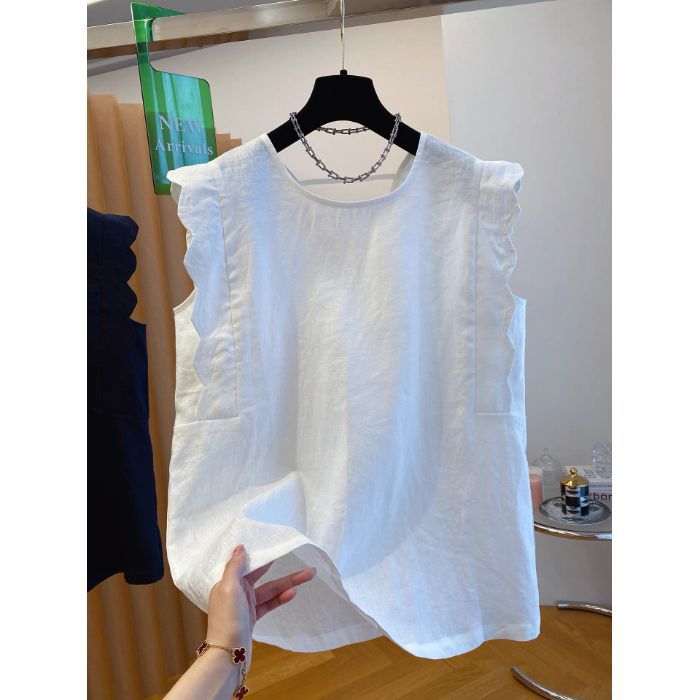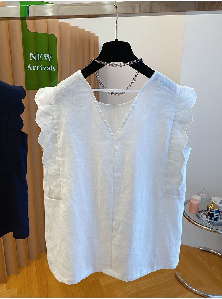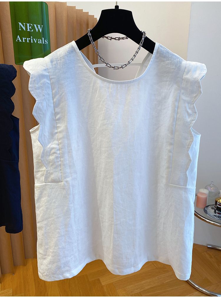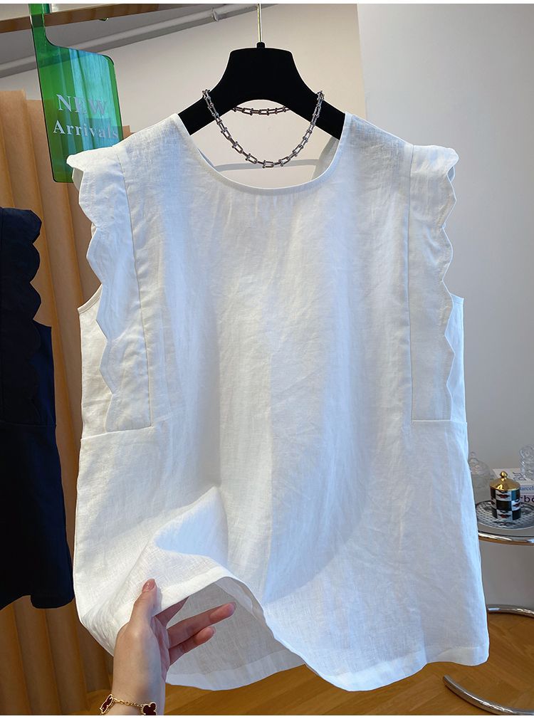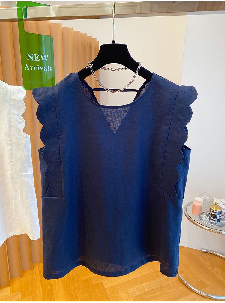 Retro Linen Vest Shirt Women's Top