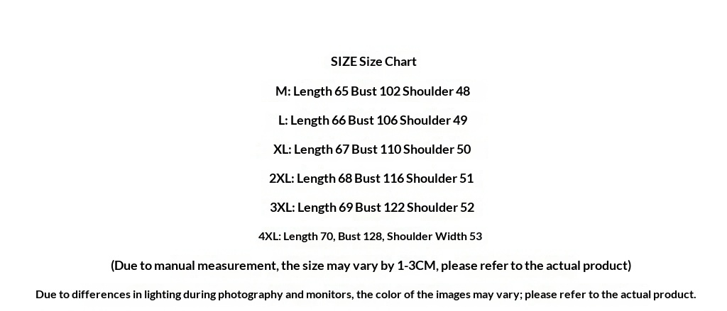 Note: 1. Asian sizes are 1 to 2 sizes smaller than European and American people. Choose the larger size if your size between two sizes. Please allow 2-3cm differences due to manual measurement. 2. Please check the size chart carefully before you buy the item, if you don't know how to choose size, please contact our customer service. 3.As you know, the different computers display colors differently, the color of the actual item may vary slightly from the following images.