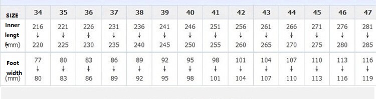 Sizes: 34, 35, 36, 37, 38, 39