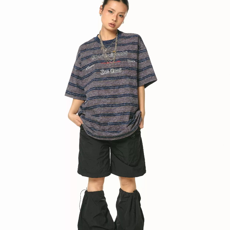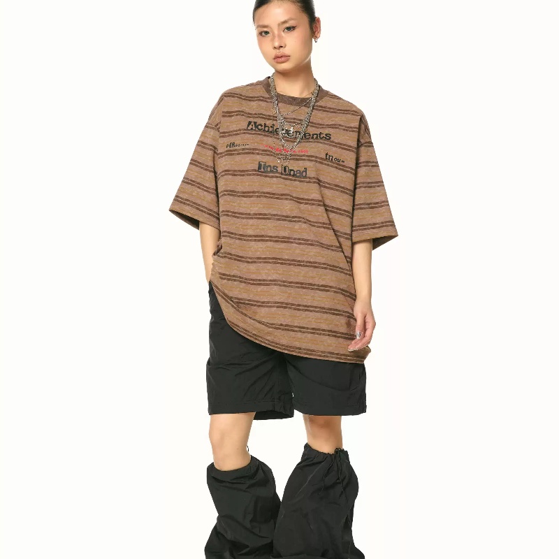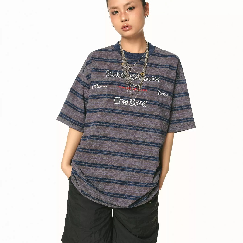 Retro Loose Striped Printed T-shirt Women's Summer Tie-dye
