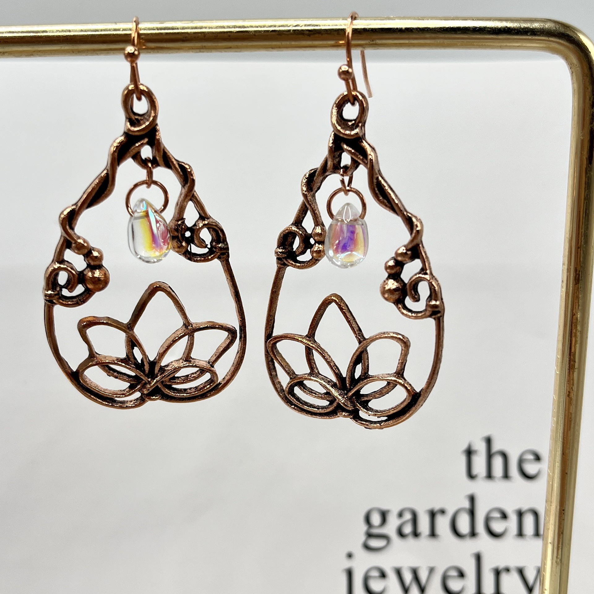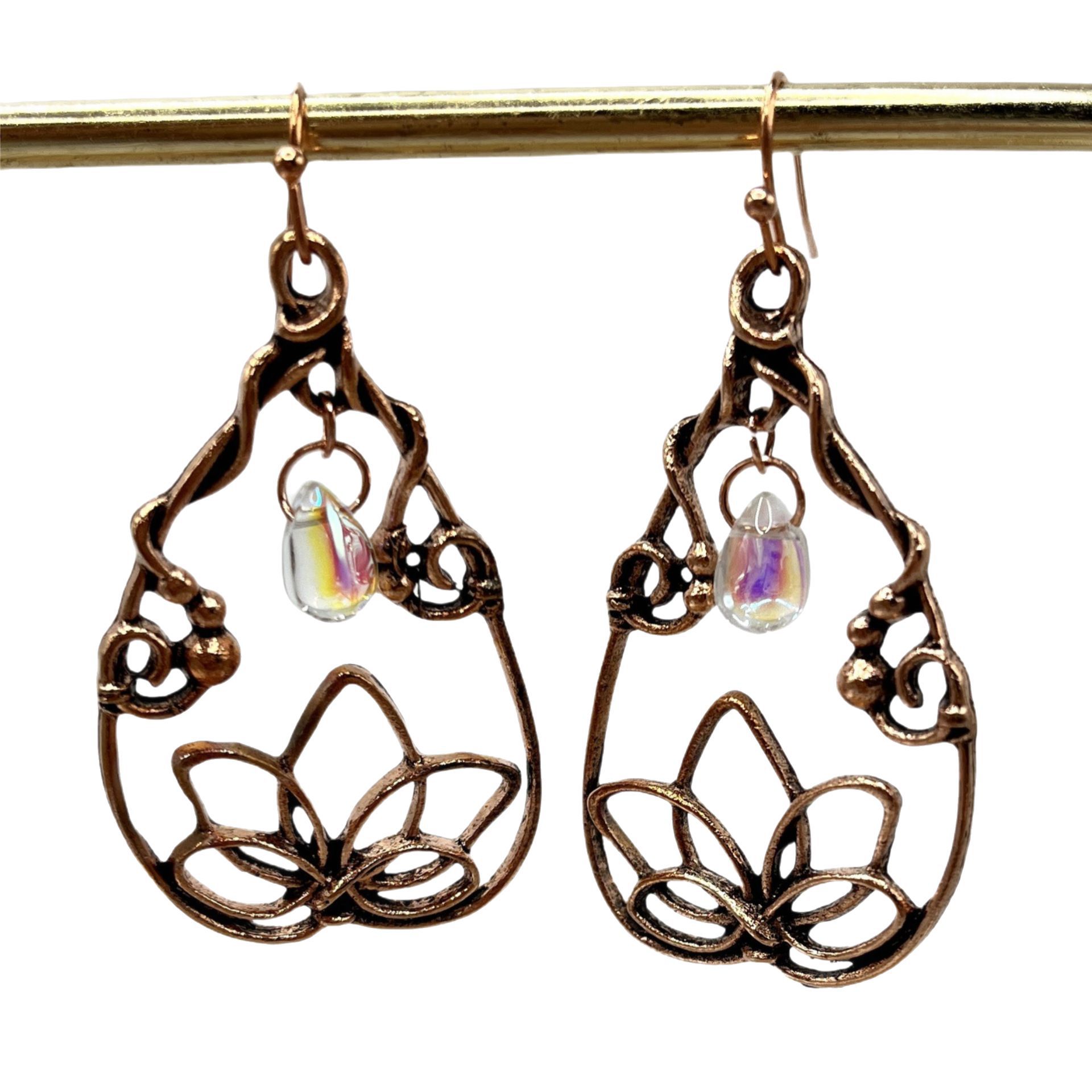 Retro Lotus Flower Waterdrop-Shaped Earrings Inlaid With Moonstone