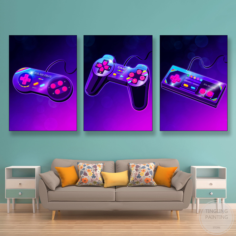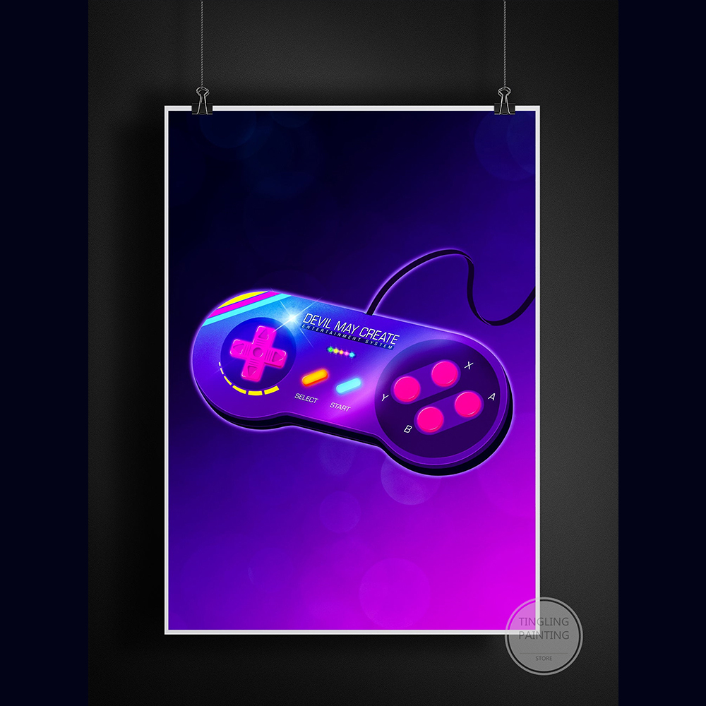 Retro Neon Game Poster Canvas Painting