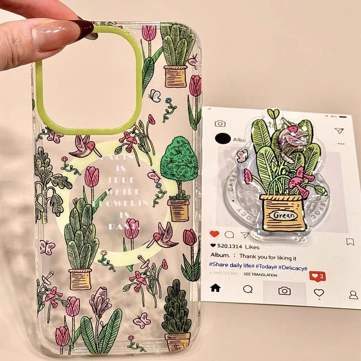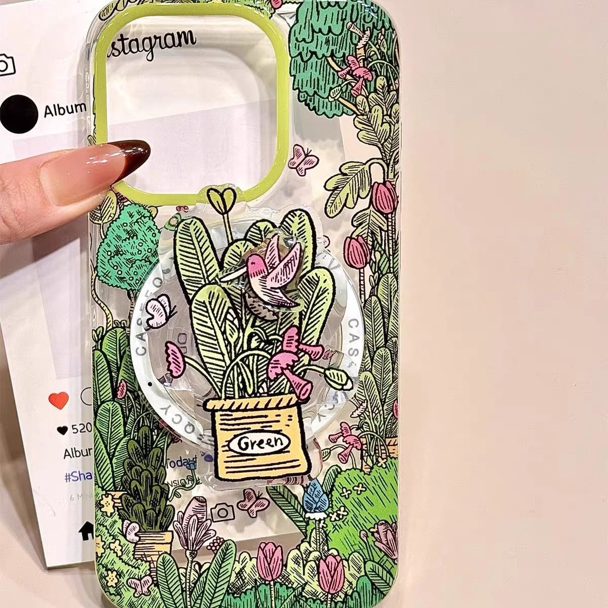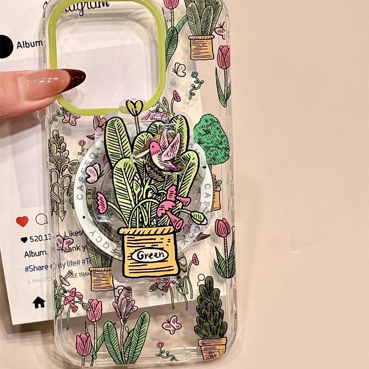 Color: [Green tree flowers and birds-single shell] with magnetic suction, [Green tree flowers and birds rotating bird pot magnetic suction bracket] with magnetic suction, rotating bird pot [single airbag magnetic suction bracket]], [Potted flower bird-single shell] with magnetic suction, [potted flower bird rotating bird potted magnetic suction bracket] with magnetic suction
