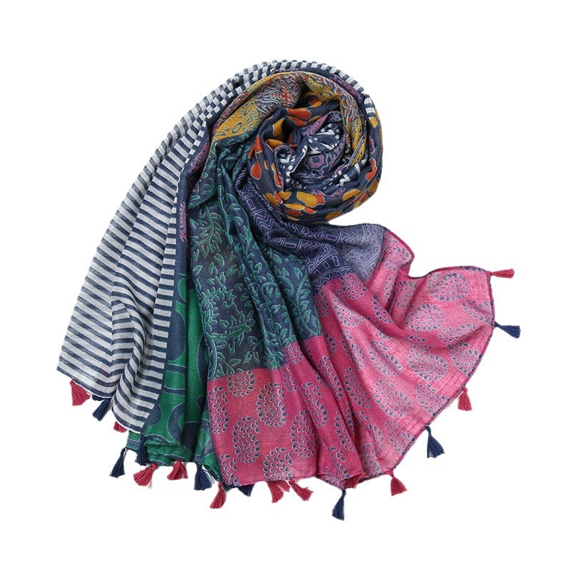 Retro Patchwork Bohemian Printed Cashew Scarf
