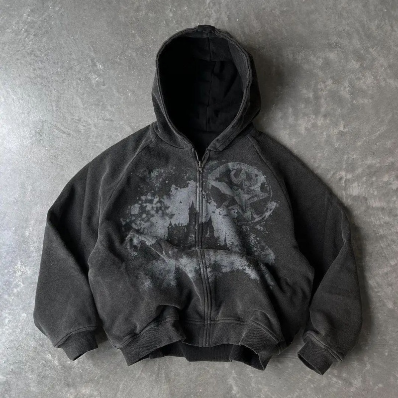 Retro Pattern Printed Zipper Top