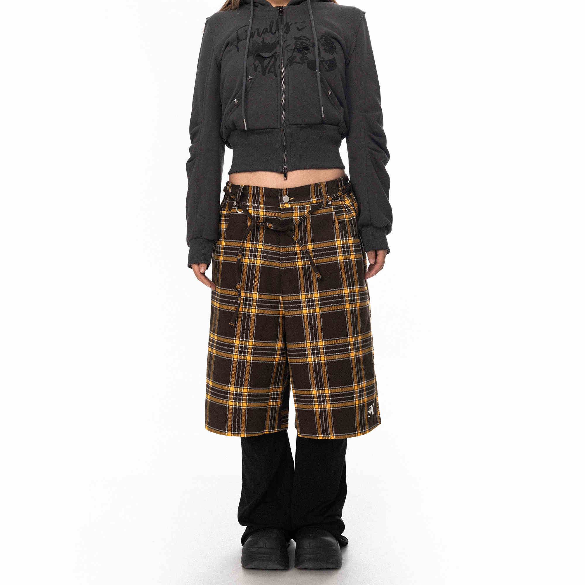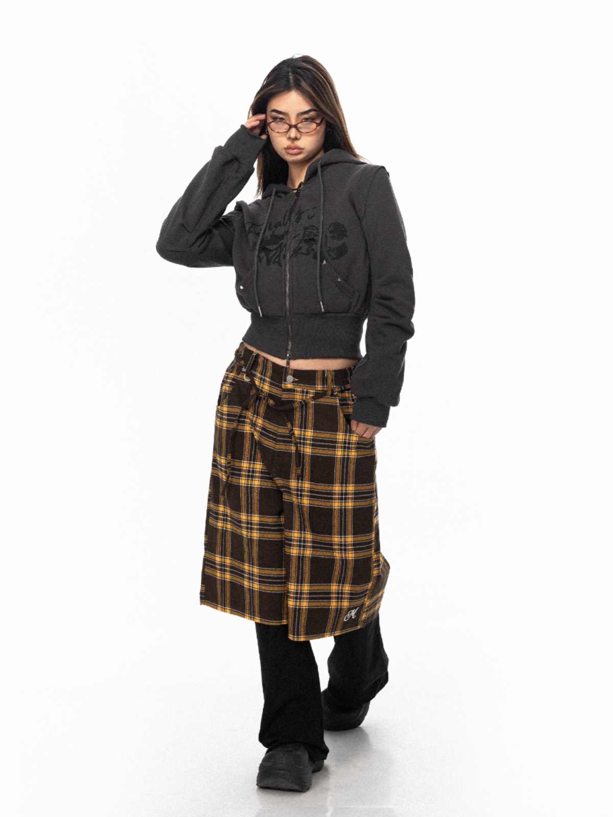 Retro Plaid Pants Women's Loose Casual Straight-leg Wide Leg Shorts