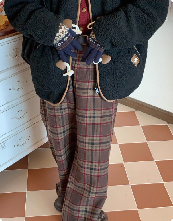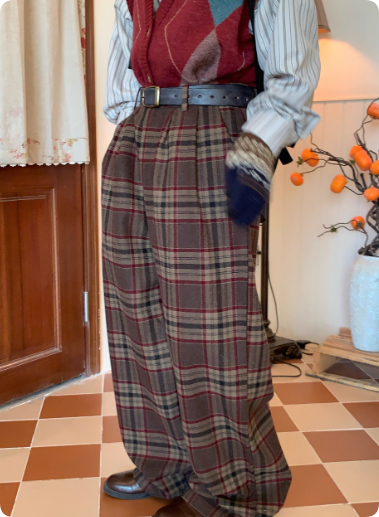 Retro Plaid Woolen Thick Casual Trousers