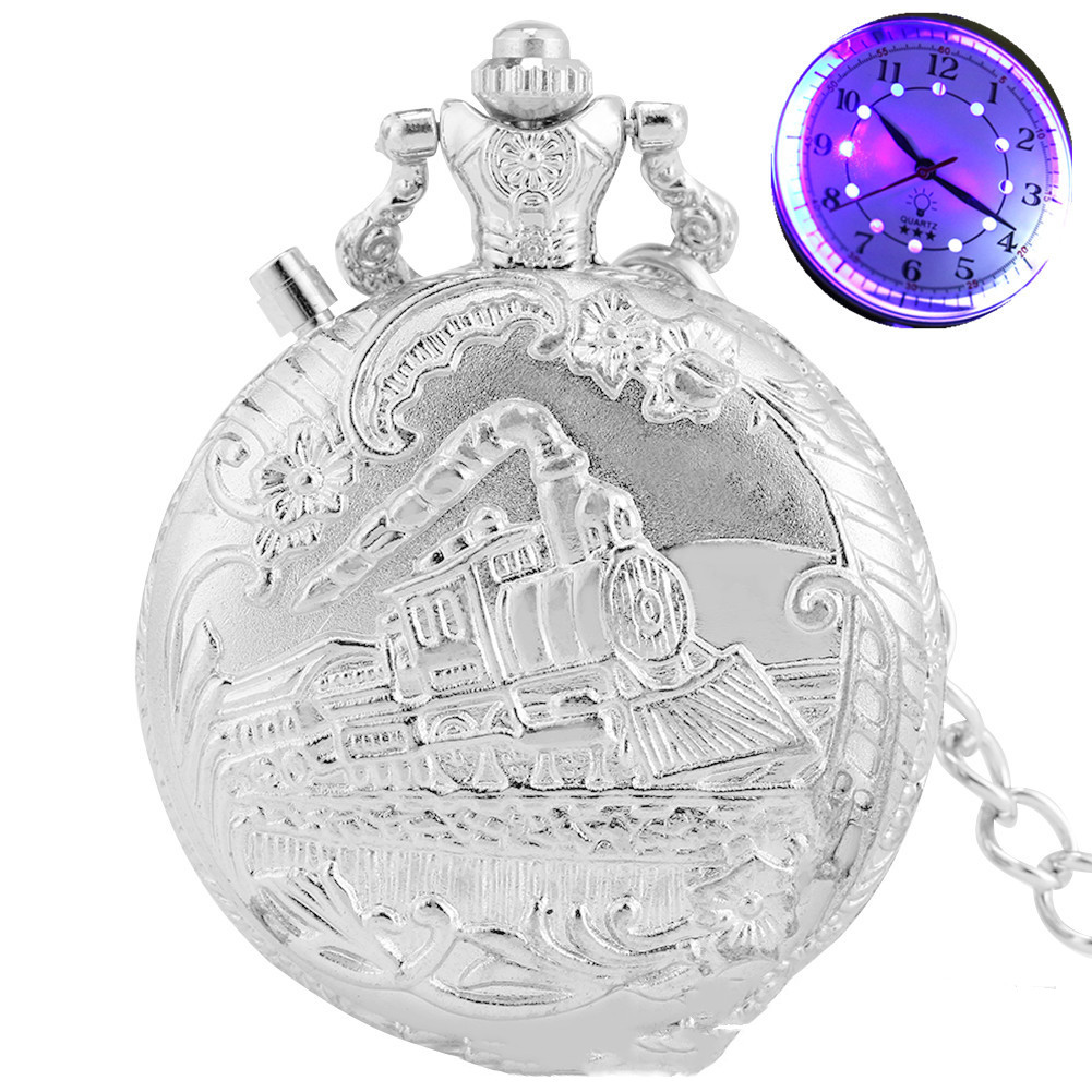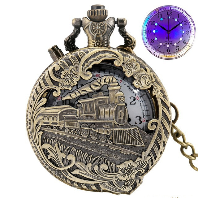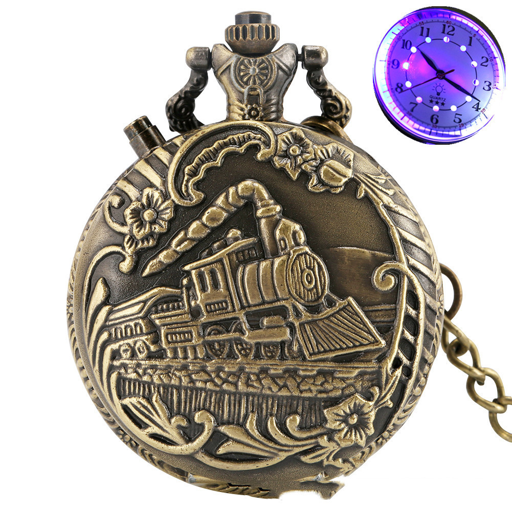Retro Pocket Watch Locomotive LED Light Literal Creative Quartz Pocket Watch