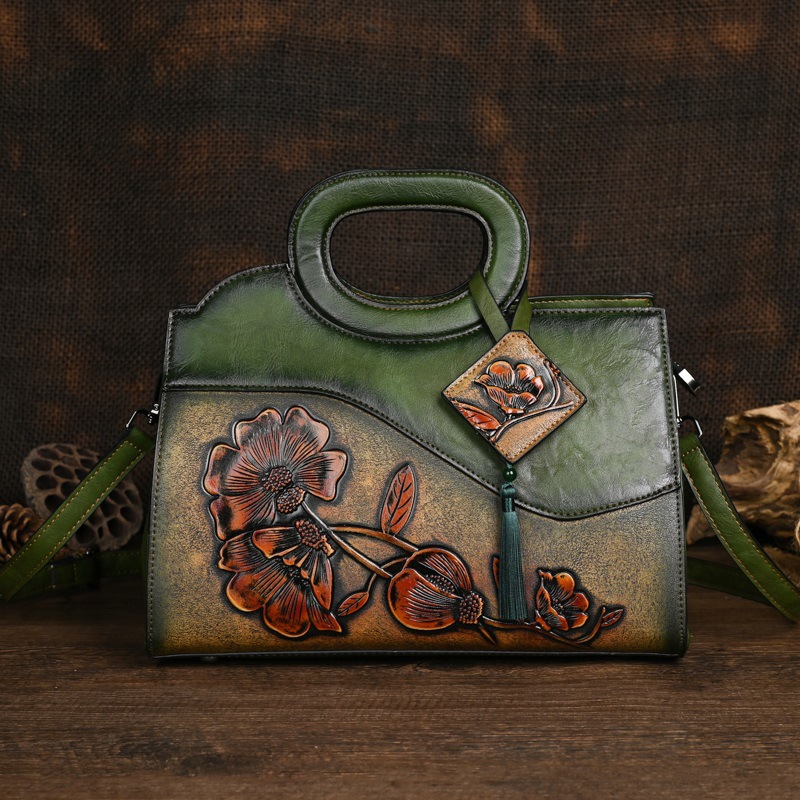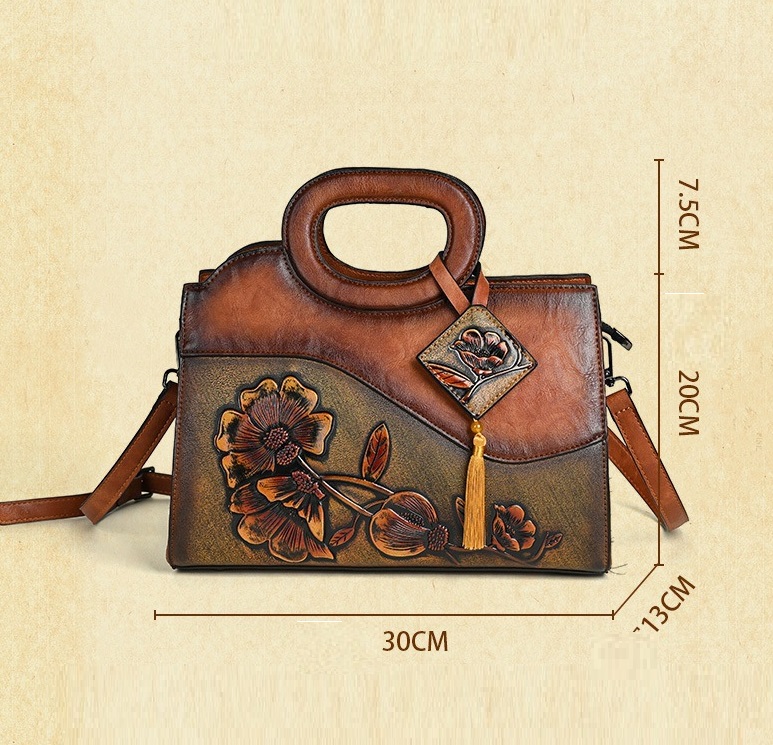 Retro Portable Crossbody Embossing Brush-off Craft Women's Bag Ethnic Style