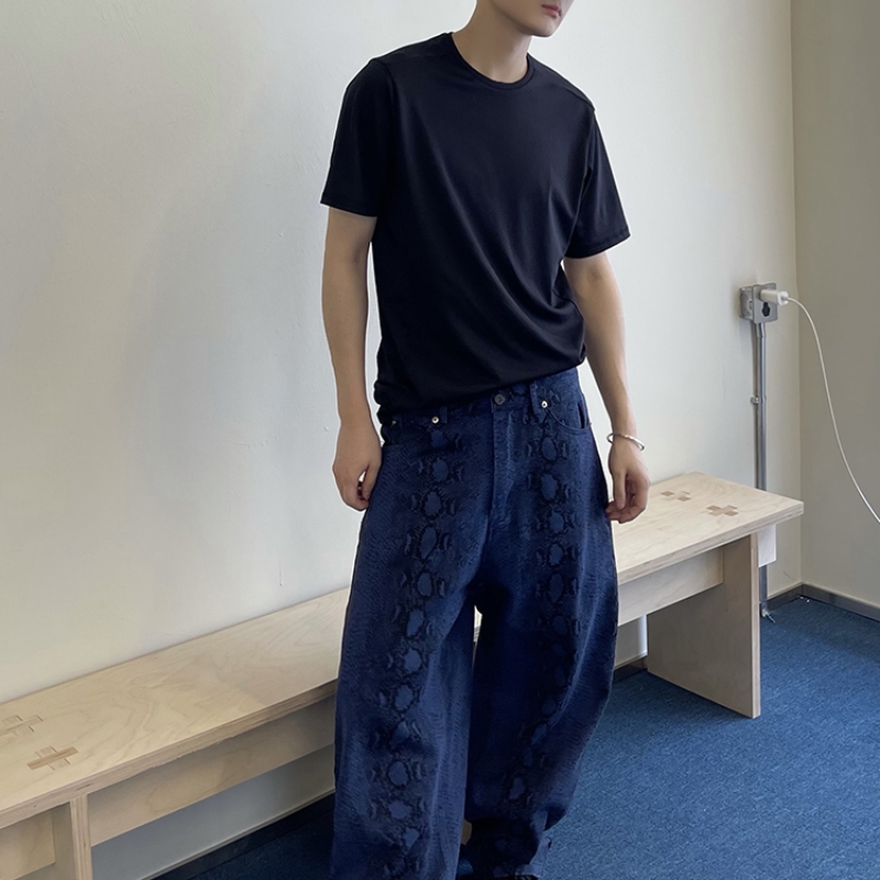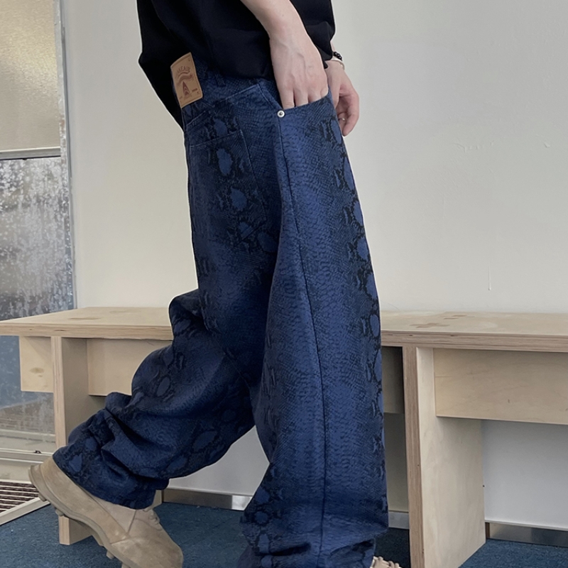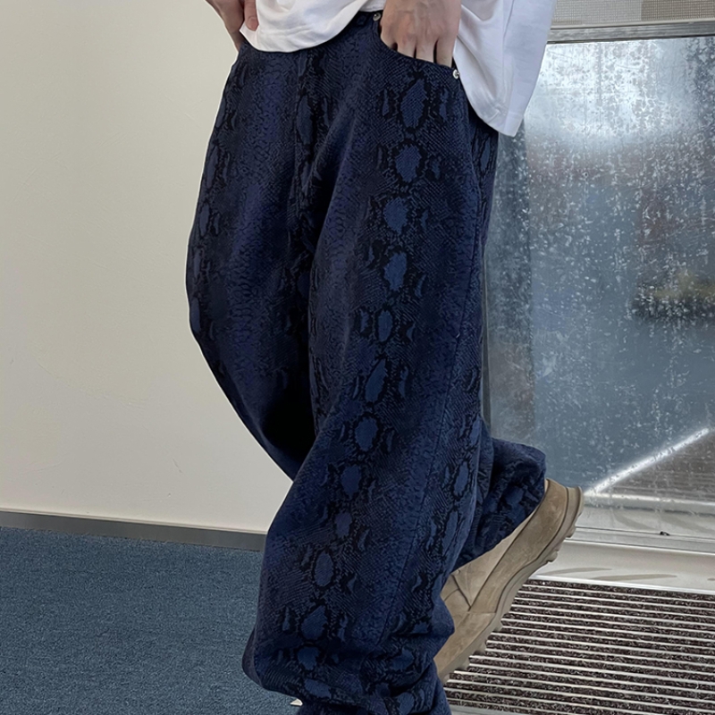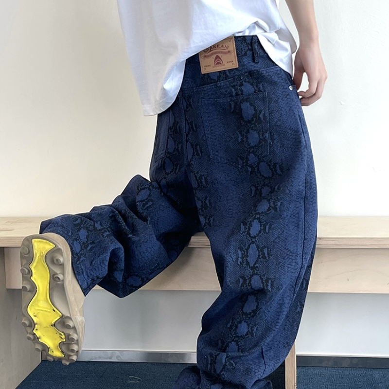 Retro Pu Shuai Canvas Blue With Snake Texture Printed Matchet Pants