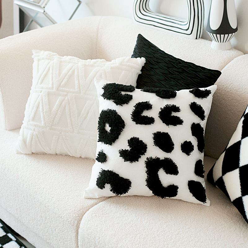 Color: Rabbit fur black and white checkerboard square 45x45cm, velvet black tassel landscape printing 45x45cm, tufted leopard print square 45x45cm, white rabbit fur wave 45x45cm, wave fold black 45x45cm