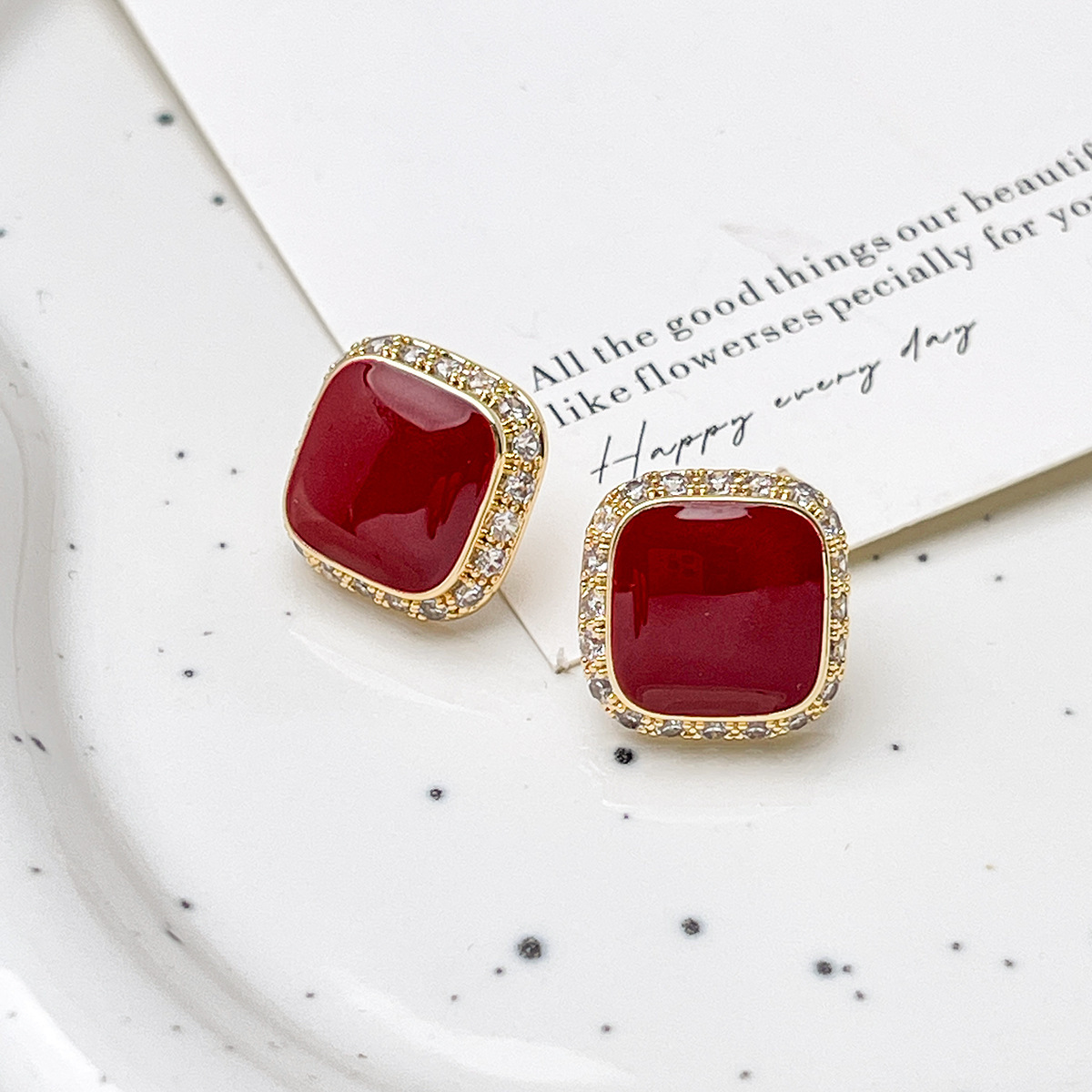Retro Red Plate Temperament Inlaid Square Simple And Stylish Earrings
