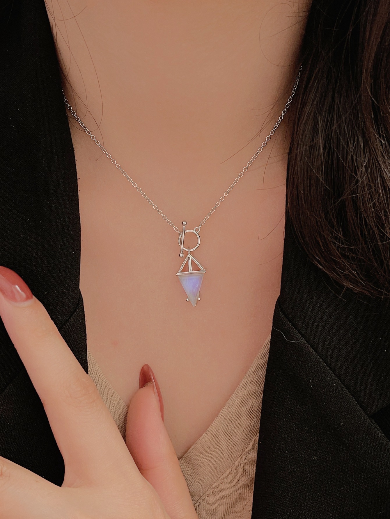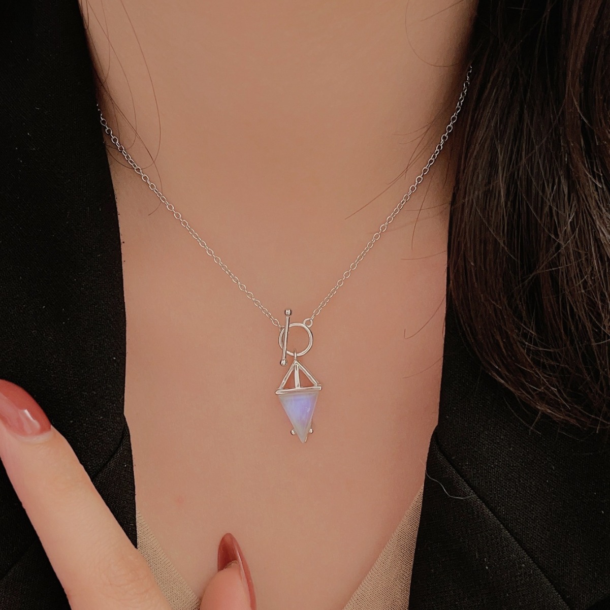 Retro S925 Sterling Silver New Style Diamond Moonstone Necklace For Women