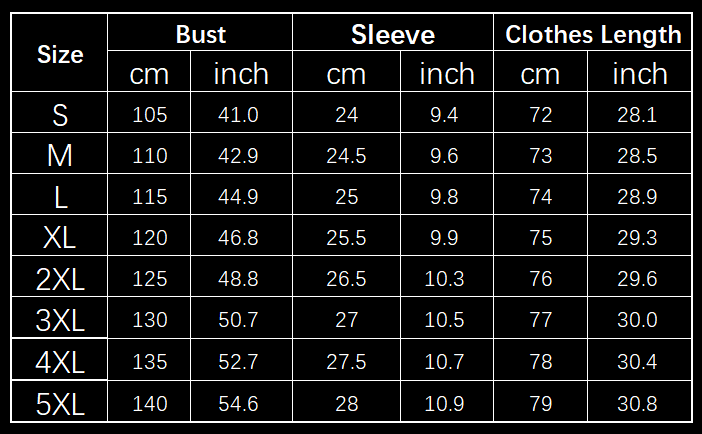 Size: S, M, L, XL, XXL, XXXL, XXXXL, 5 XL