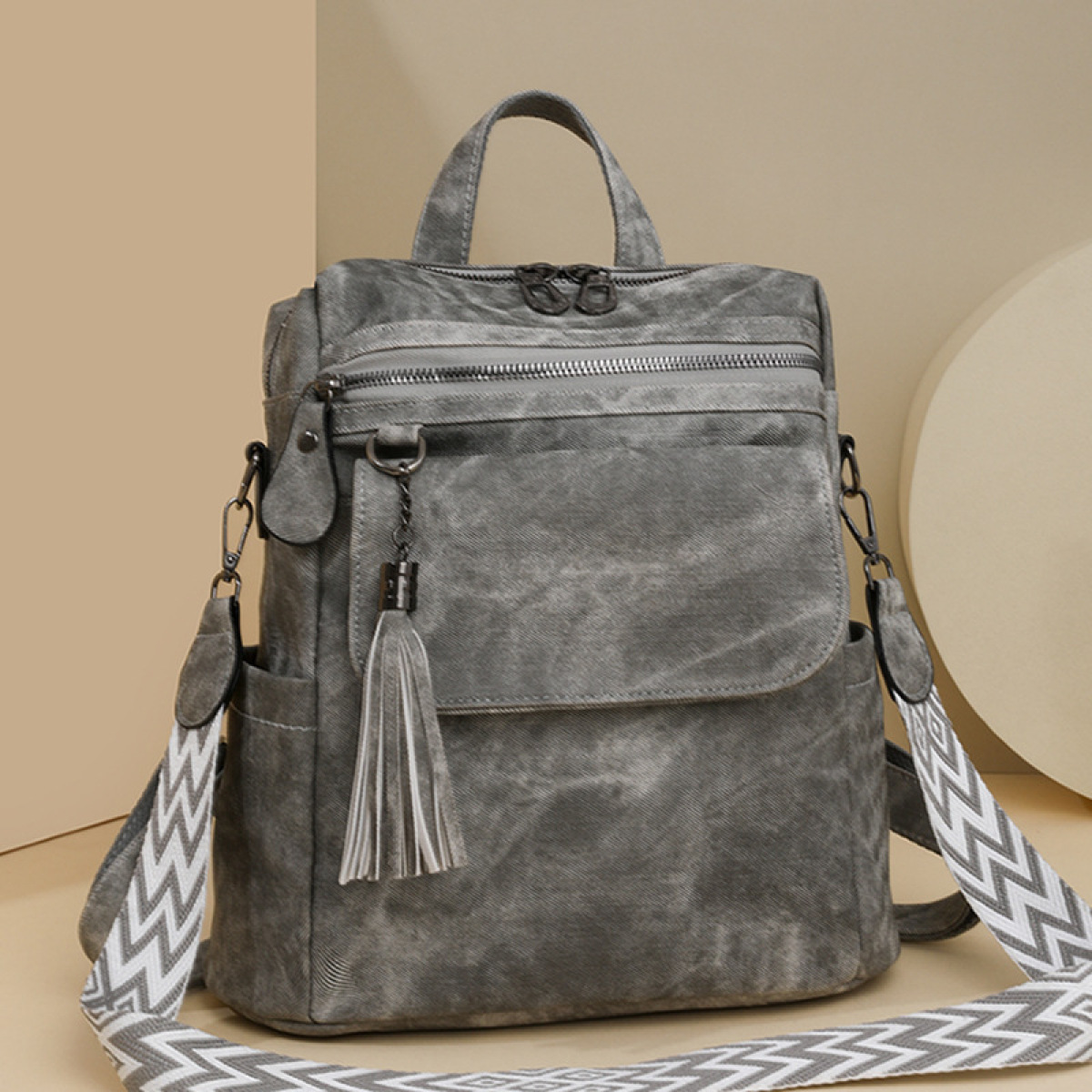 Color: blue, brown, khaki, black, gray