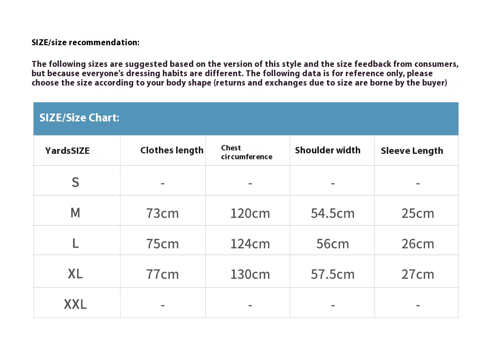 Note: 1. Asian sizes are 1 to 2 sizes smaller than European and American people. Choose the larger size if your size between two sizes. Please allow 2-3cm differences due to manual measurement. 2. Please check the size chart carefully before you buy the item, if you don't know how to choose size, please contact our customer service. 3.As you know, the different computers display colors differently, the color of the actual item may vary slightly from the following images.