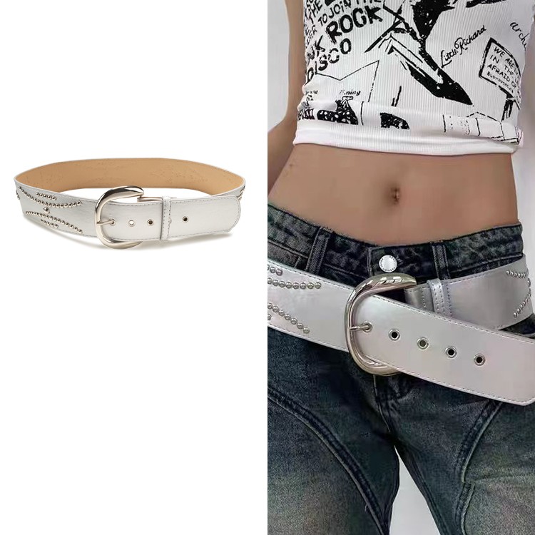 Product information:Style: Belt Main material: PU (artificial leather) Color classification: Silver rivet wide